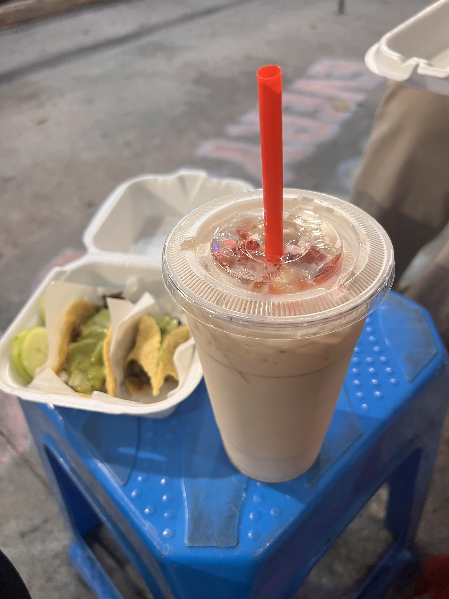 First time eating here, came because of the reviews. Didnāt disappoint, reminded us of TJ style tacos - onion, cilantro, and guacamole. Other toppings that are available are sour cream, jalapeƱos, and grilled onions. The horchata has fresh cut strawberries, it was to die for - you can taste the lechera (condensed milk). Service was great & friendly. Atmosphere was nice, there were lights and chairs to sit. Nice to have a place close by all of the breweries for a great meal afterwards.