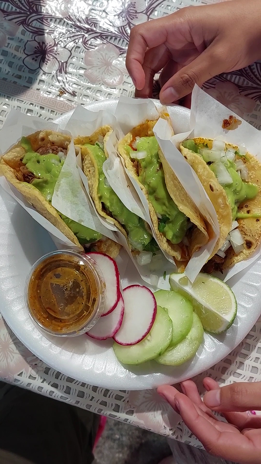 All had onion, cilantro & guacamole: 2 tacos de carne asada 2 tacos de cabeza 2 tacos de adobada 1 cheese quesadilla 1 horchata 1 water bottle $38 (not...