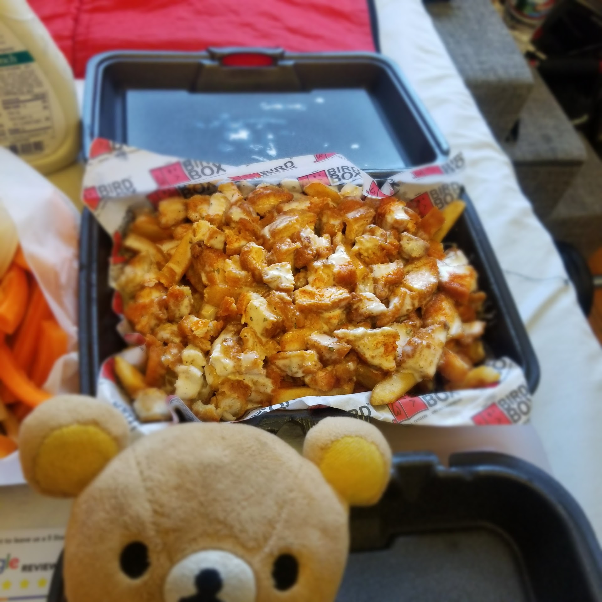 2020.08-24_1715/MON: it stinks that Google won't let you enter updates reviews because we order weekly! This time we got the Krunked Fries and had no idea there was chicken in the fries!!!!!!! ❤️ They are fire! Of course our order came lickety split and super hot! Love the Bird Box!