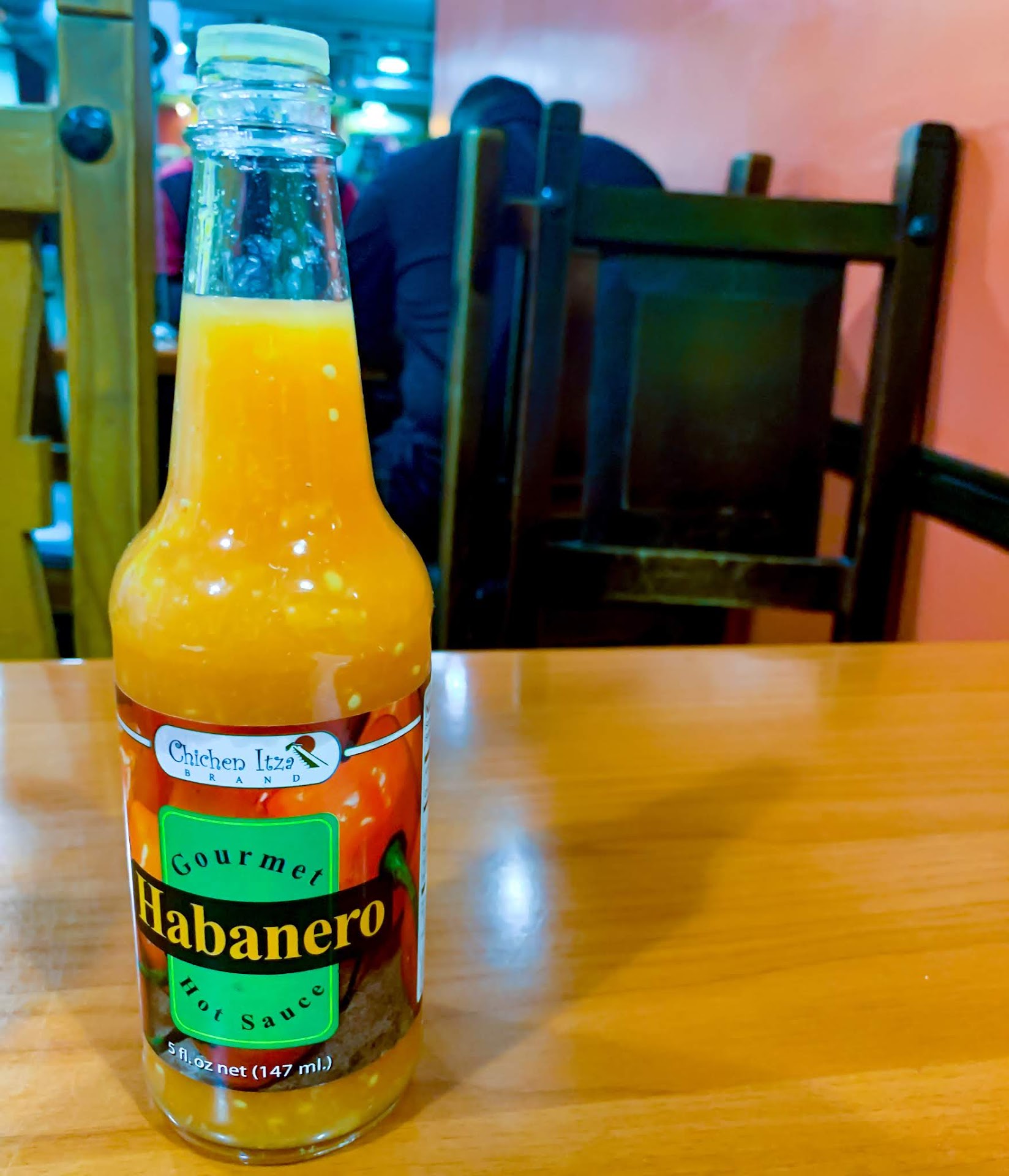 Most tacophiles come here for the "Cochinita Pibil Tacos," which are excellent as well. The stringy pork is tasty and juicy, with a prevailing taste of sour orange and recaudo rojo, but more mellow and earthy than what I would typically expect from Cochinita Pibil and, in fact, a subtle sweetness can be discerned, likely imparted from the banana leaf it was cooked in. In this taco, the red onions are pickled rather than roasted as they were on the Poc Chuc Taco. There is a self-bottled, self-branded habanero sauce at each table that I suggest using with Chichén Itzá's Cochinita Pibil. You don't need a lot; a little bit of heat goes a long way on this taco.