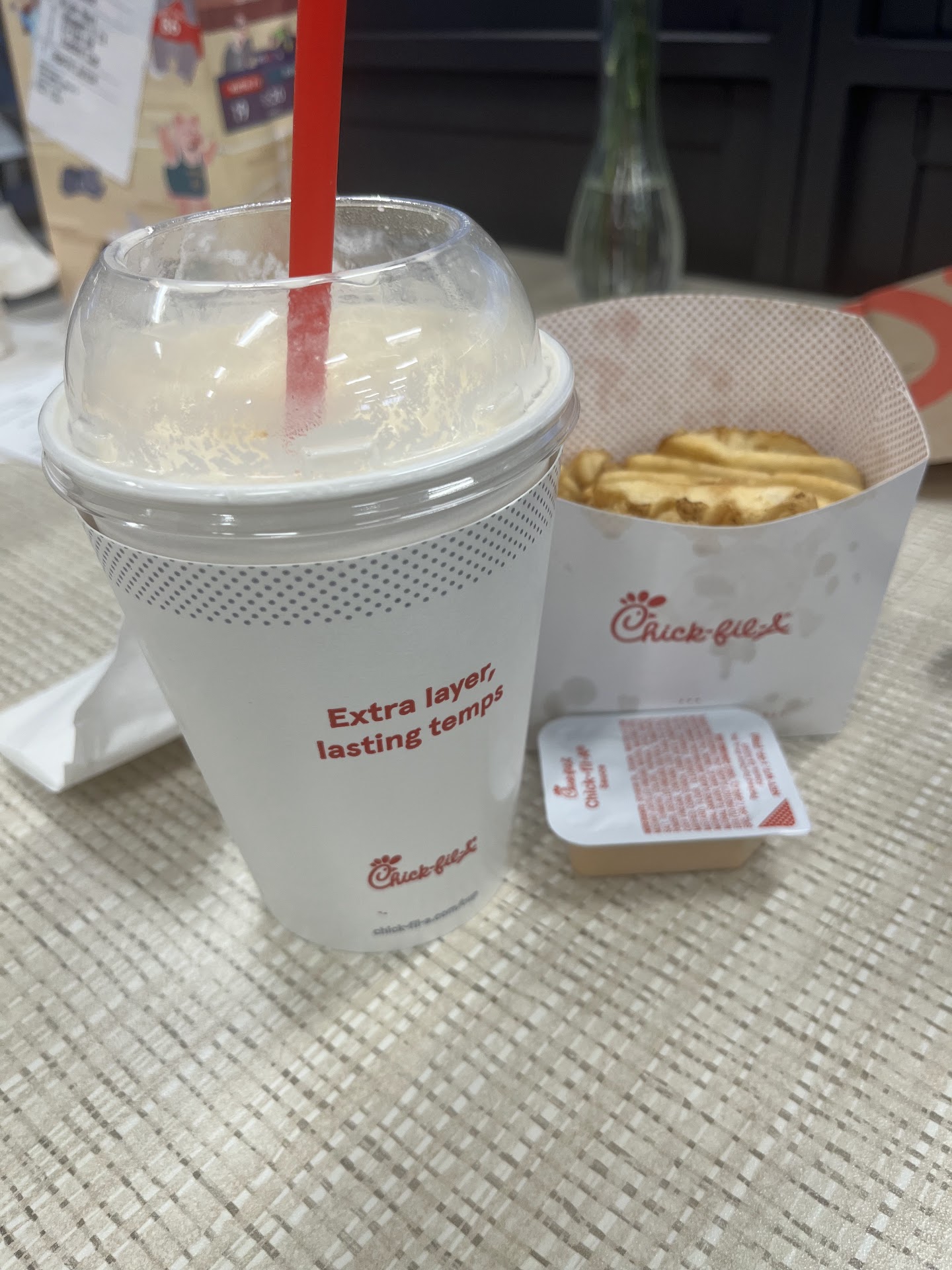 I haven't had Chick-fil-A since I lived out in Pomona and I always loved their waffle fries and their sauces, especially their Heinz ketchup dip/squeeze packet.