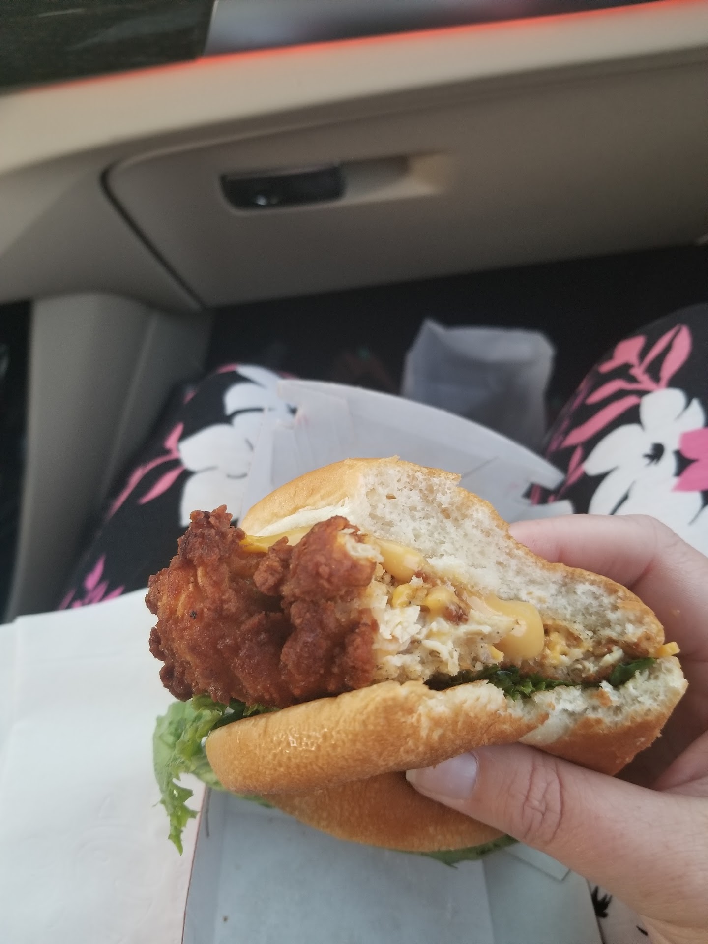 Anyways, this place might seem like a typical fast food joint from the outside or even the inside, but the friendliness and service provided by the staff makes this place jump out ahead of the pack. Everyone is friendly, give you refills whilst you sit, take your empty food trays away, walk around and ask how the meal was or if we want more sauce, etc. Very thoughtful and kind. The food is pretty good as well. I've only tried the Spicy Chicken Sandwich and the Chicken Nuggets thus far, but both have been spot on and delicious. The place has a variety of chicken entrees to choose from but I feel I'll just stick with the spicy sandwich because it was damn good.