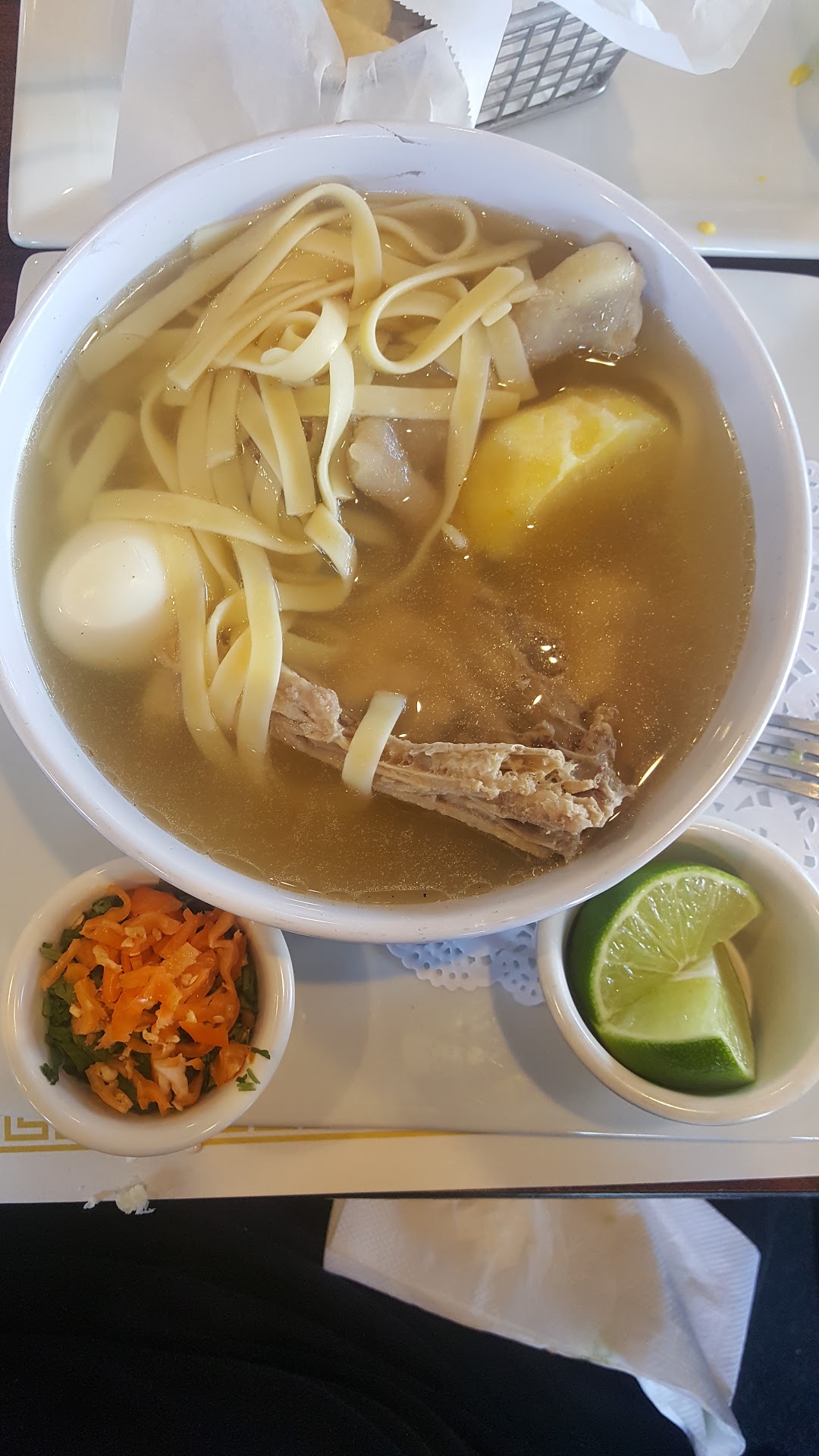 Tried the caldo de gallina, it was a dissapointment, it came with one yellow potato and it was undercooked, i was told that it is steamed and added to the final plate, the soup did not have a good taste, it tasted in fact as if everything was prepared separate and added together at the last second, the broth had a very dull and plain taste; we also tried the tallarin verde and tallarin a la huancaina, the huancaina sauce and green sauce of the tallarin verde tasted to cream cheese instead of fresh cheese, the service was really slow, they "forgot" to prepare the order of someone in our group even though we reminded them 3 times, I did not get a spoon for my soup and had to ask 3 times for one. We were charged $2.50 for a glass of lemonade and same amount for a tea, the sauces they bring to you come in very small containers, you have to ask for additional sauce several times before they bring it to you, the inside area is to small, the outside is to loud and you get all the smoke from the bus stop in front of the place, tiny parking area, etc for the prices you pay I suggest to try...