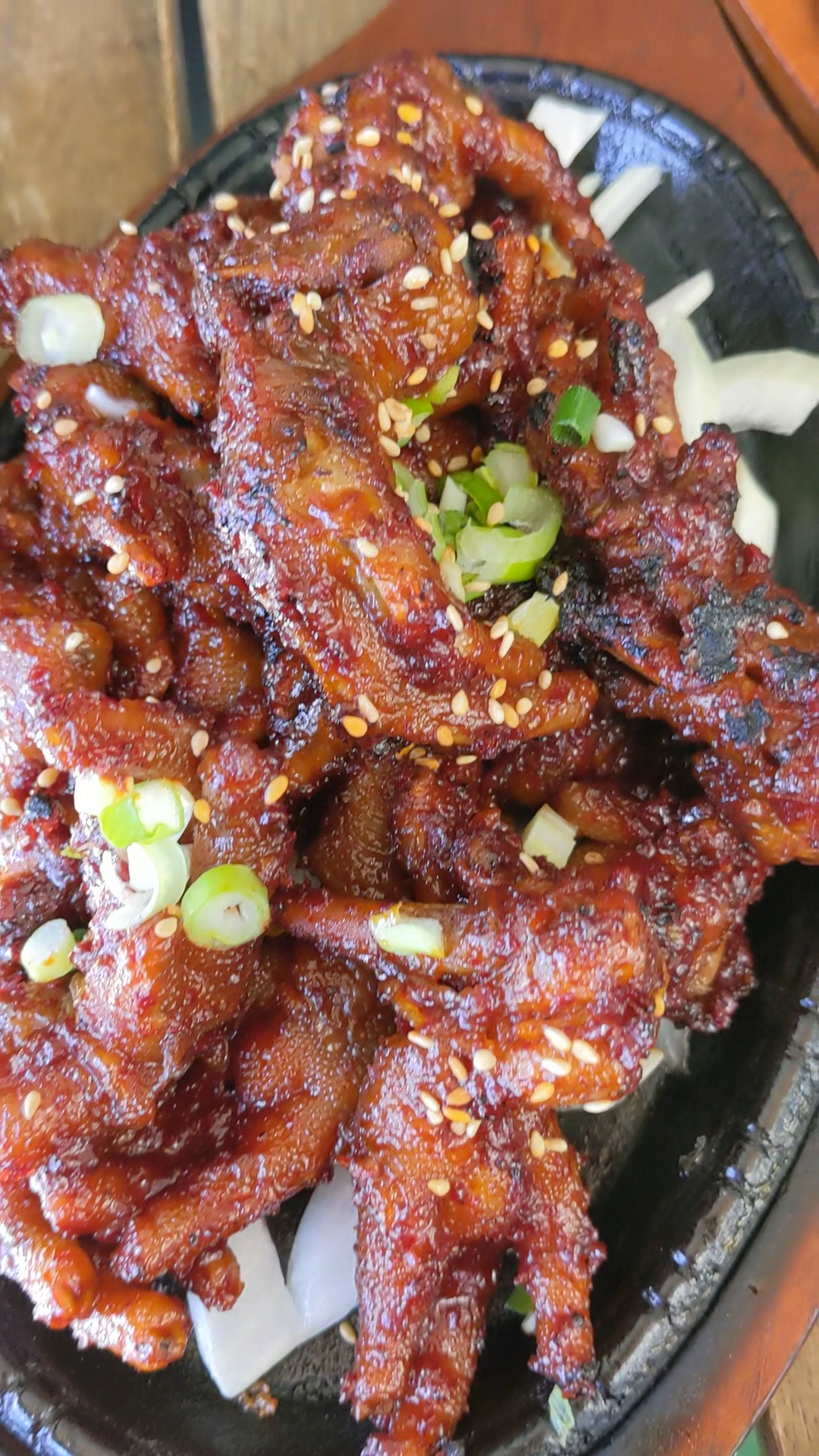 Chicken Feet - saw this dish on K-drama all the time. Finally~ I got to try it myself! OMG! No wonder they call this "Korean Drinking Food". They are spicy & savory. It will go so well with beer or soju.
