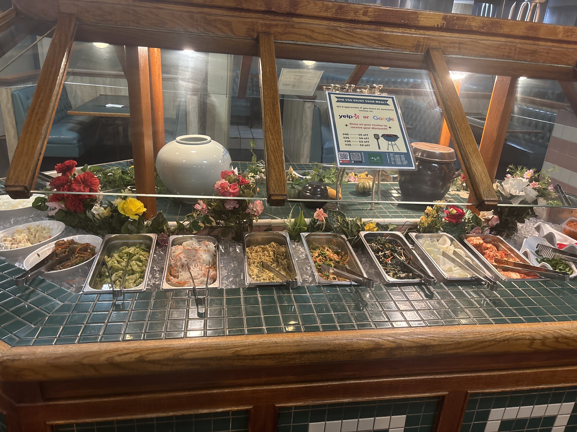 Wow! I've never been a fan of buffets, but this is different. My friends and I decided to come here to try out their Lunch Special Buffet on a Friday around 11am. The place just opened up, so everything was nice and fresh. I've never been to an buffet-style Korean bbq spot, where you're able to grab your own side dishes, meats, and other tasty goodies like their Korean soy chicken wings (don't skip this). I actually like the idea! There were also some more traditional side dishes that I'd never seen at other restaurants. You don't have to wave down a server multiple times, then complain about the service later in a review. However, I would suggest not overdoing piling up your plates though, and always take whatever you think you'd be able to eat. We all hate wasting food, so we were very intentional about our portions. They have so many options from japchae to pickled daikon/carrots and more. There were also some more traditional side dishes that I'd never seen at other restaurants. The only time we had to ask anything from a server is the infamous "green onion salad" and the cold noodles. Both were very delicious. They had a few rice options - white, glutinous, or fried. The day we went they had perilla leaves in the buffet, which is not an every day thing. I decided to mainly eat with perilla leaves and some green lettuce leaves with my proteins and stayed away from rice. The owner came out to actually talk to us and teach us traditional ways of eating. One of the servers helped us cook our meats to make sure we didn't overcook anything. We all truly appreciated it. I love learning new things. They also had different soup options. My friends and I were drawn to the pumpkin soup, since it's not like anything we've ever had at a Korean bbq spot. It was actually really delicious! More on the milder sweeter side, could pass for a subtle dessert. On the other hand, we were offered the fermented rice dessert that is supposed to help with digestion. It was different. The texture of the rice was definitely unique. Choeng Wun is honestly such a historic hidden gem. It's definitely more on the old school ambiance vibe. Definitely gives the late 80s/early 90s vibe, but honestly, truly worth the experience! The parking was easy, since it's in a free shared plaza. The space is pretty big, so it can probably hold big parties as long as they're notified...