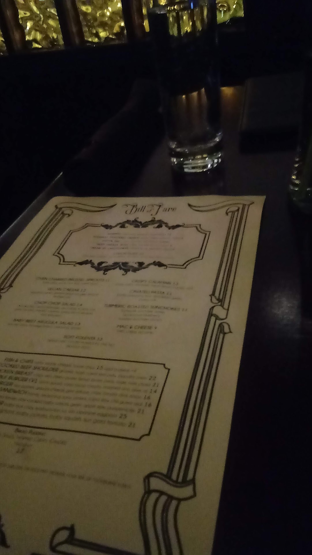 Came here for dinner on new year's eve before hitting the night. The place seemed pretty cool. It has an old timey feel. The decor was cool with pictures surrounding the entire space. Once we were seated we were greeted by our waiter. He was friendly and took our drink orders right away. We also ordered the chicken bites appetizer. When the rest of our party arrived, we got down to the nitty gritty and ordered our food. I got the vegetarian curry, my bf got the burger, 2 others got the fish and chips, the fried chicken sandwich, more chicken bites and the mac and cheese.