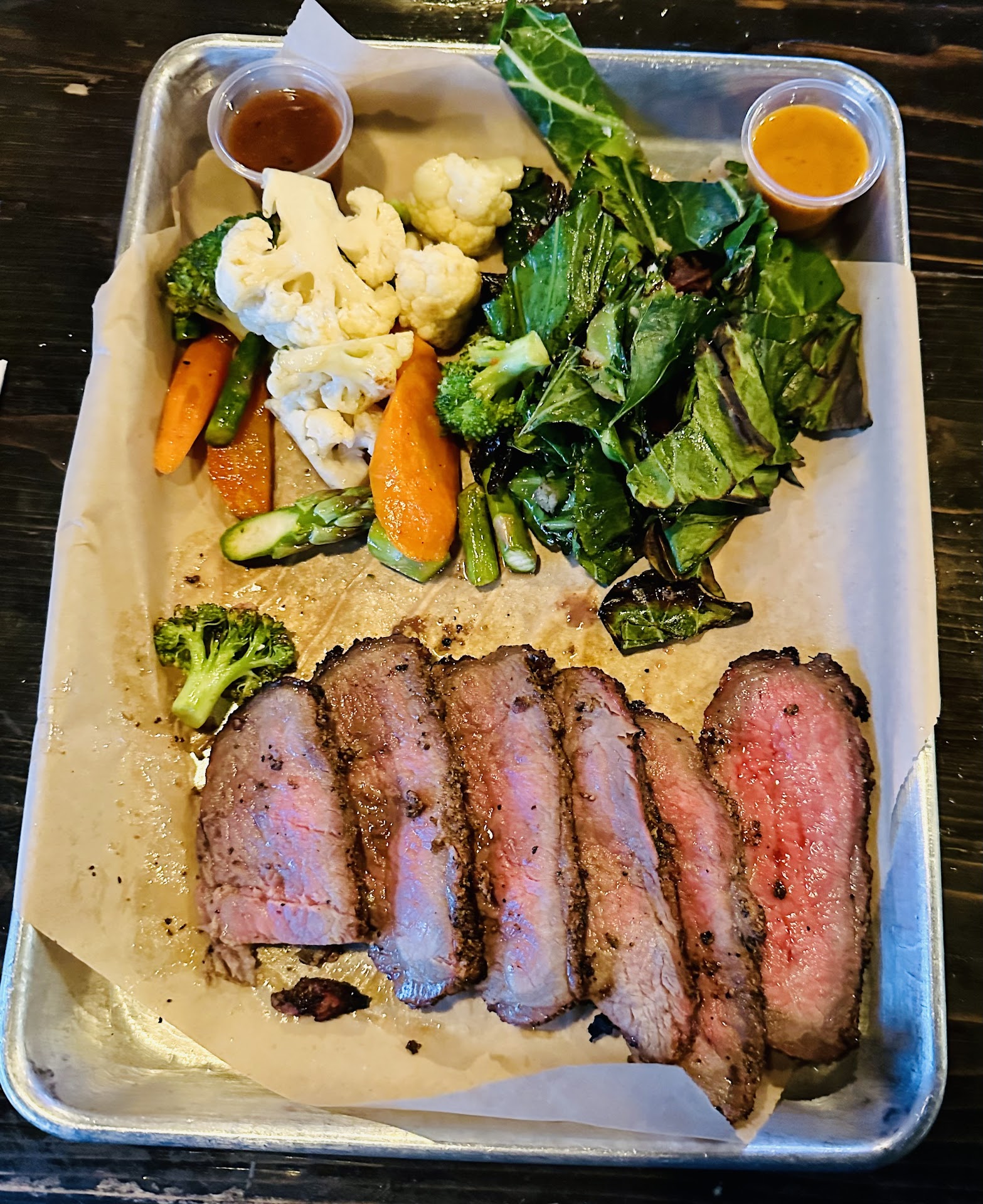 Read moreI think this place has potential. First, the food. The BBQ tri-tip was done perfectly and tasty. However, their BBQ sauces (at least the ones I received) are all too sweet, which is not a good complement to the tri-tip. The vegetables side also had some sort of sweet glaze, which wasn’t good. The collard greens are underdone and lack seasoning or taste — so those need some work. The barbacoa taco also was lacking in taste, too bland. So, overall the food was hit and miss, but has the right foundations to be great, with a little work. The atmosphere itself, I could see being great on a nice warm sunny day. Totally open, would have a good vibe. On a cold, grey LA day, however, the everything-open situation was downright cold and not at all comfortable (at lease close all the wide open windows in the dining room! On a grey day a fireplace of some sort would really liven things up in there). So, potential for the BBQ is there. Everything else needs work, except the ordering, service, and...