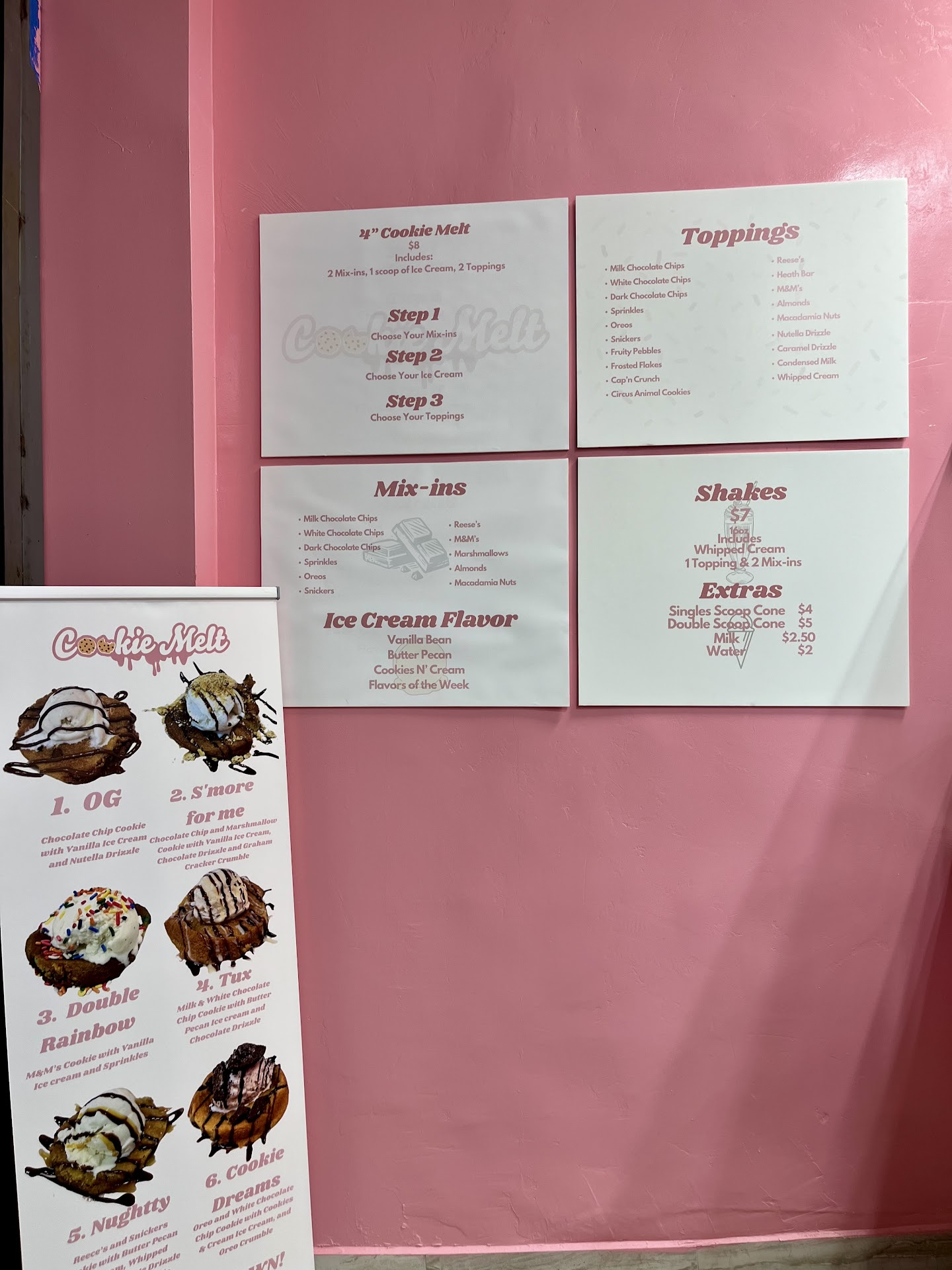 Read moreFound this cute dessert shop while driving through the downtown alley district. Chose to stop because of the super cute decor and menu outside. The cookies are super yummy, warm and topped with a variety of ice cream flavors, sauces, and candies. You can choose to enjoy your treat inside at one of their tables or take it to go. Whoever designed this shop made it seem like a pink paradise in between the concrete pavements and business of this...