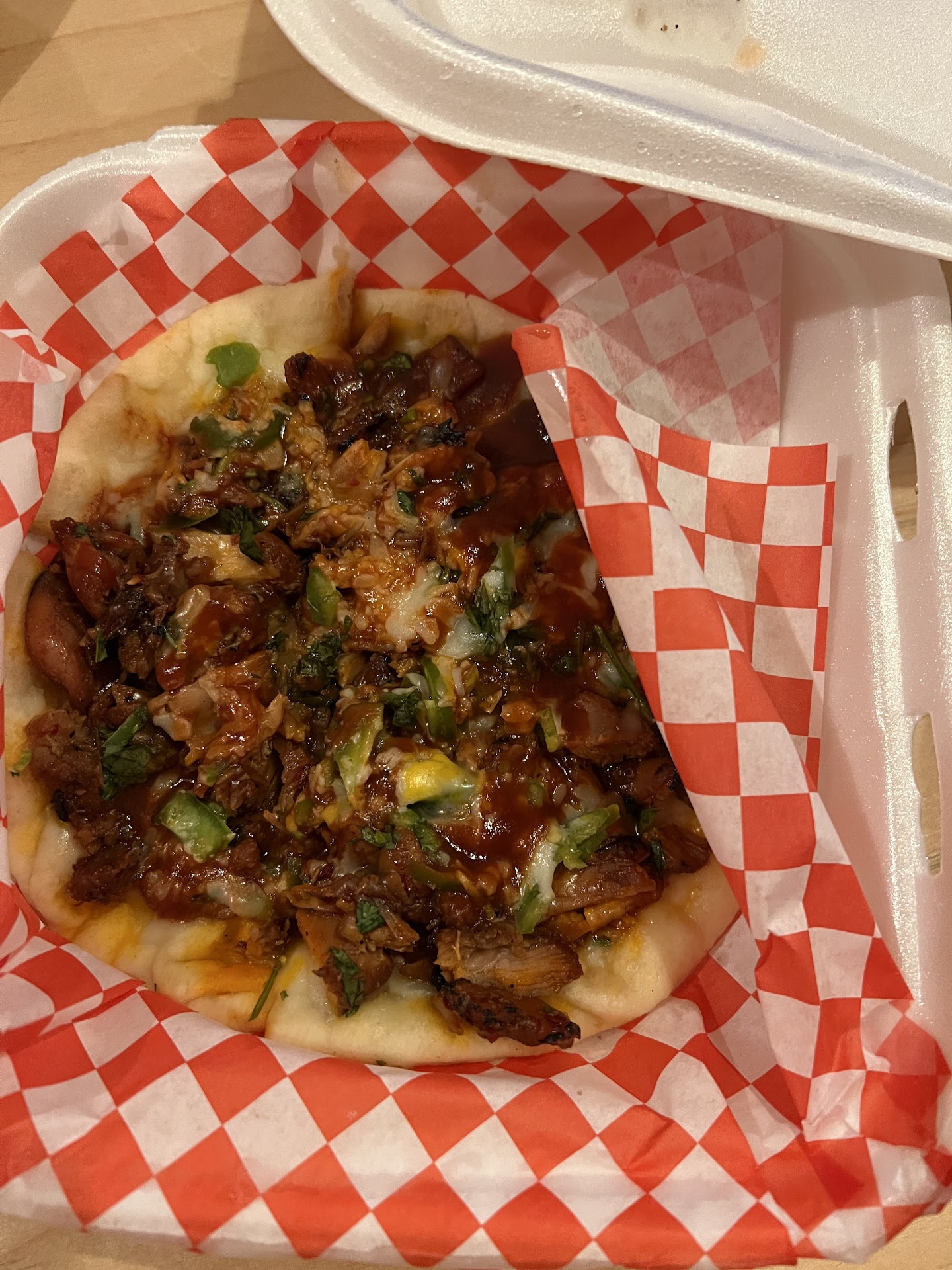 Read moreWe ordered DoorDash here for dinner and the food came warm and hot. We ordered a lot of dishes to share - lemon pepper wings, mango habañero wings with bbq sauce, the kbbq fries, kbbq kalbi ribs, kbbq chicken pizza, rice, and house salad. The food was good, yummy for a dinner party of 4-5. The taste and quality was okay though — the wings were too battered and thick, but that’s personal preference. The pizza was really small; the crust tasted okay and the quality wasn’t the best. It just seemed like homemade cheap pizza and the crust wasn’t anything special. The fries were pretty good. Overall it was okay; maybe the DoorDash experience is different from the in person experience because it didn’t live up to the other reviews online… but I wouldn’t say it’s a bad restaurant. I’ve just had better korean food / fast food. Would recommend for locals near the area (topanga) if they’re wanting something more...