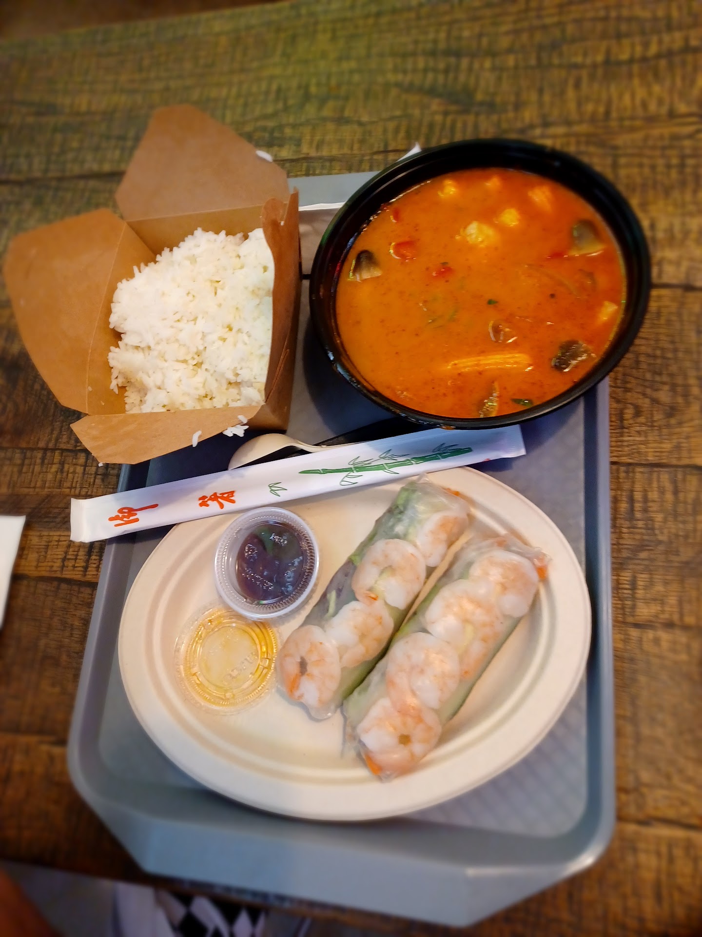 This place seems to be a great place for some descent ânot so fastâ fast food. Itâs relatively clean, but the seating is very limited and not comfortable. We had the Thai food, which was descent. The Pad Thai was tasty, but rather dry. The chicken in the dish was not very good, it tasted like it had been frozen and then taken right to the heat. The employees were not very friendly or helpful, they did it even have plates should you want to stay and eat. Overall it was not what I had in mind, but was edible. It was not very busy, so I canât imagine what it would be like during a rush. There are several places to try, just keep in mind itâs probably better To get it to go. That way if you find a place to sit and want to...