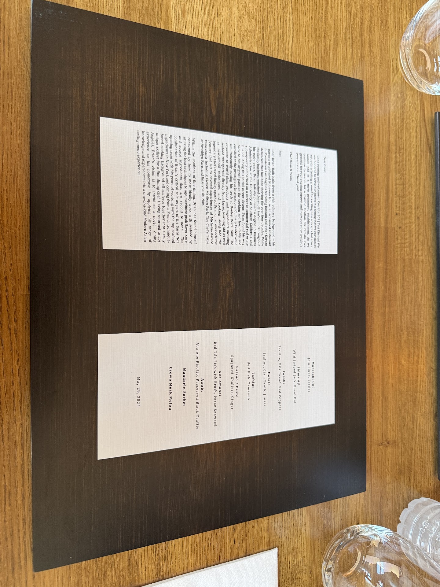Read moreOne of the best dining experiences I’ve ever had. The chef is cooking at a really high level using product that no one else has in Los Angeles. Using ingredients from Japan and Korea. The food coming from that kitchen is easily 2 Michelin stars. It is truly impressive how the chef is using such beautiful ingredients and letting them speak for themselves. He is showing incredible technique and really highlights each ingredient in every dish. I can’t wait to dine here again and see how the...
