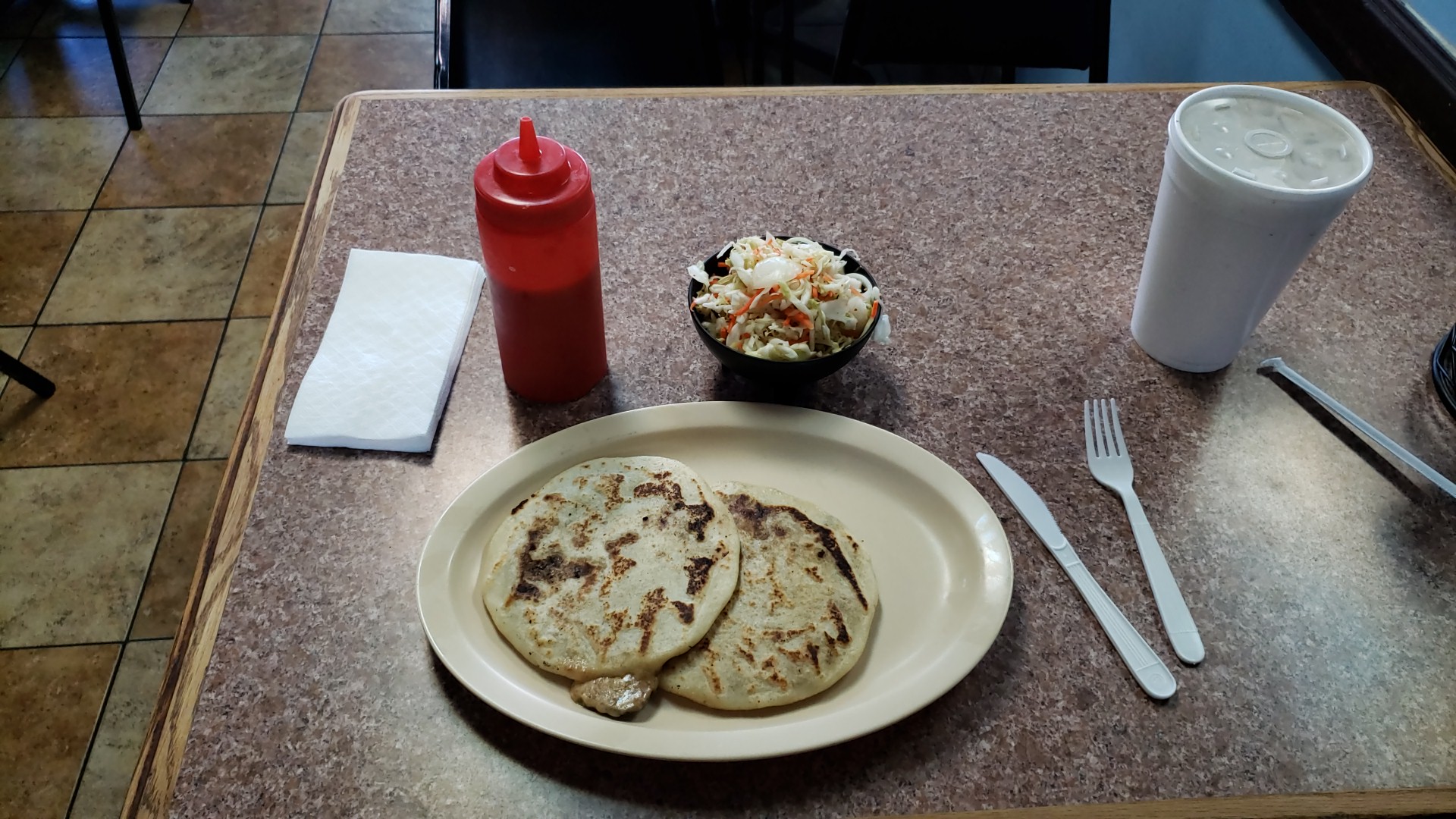 Read moreOrdered 2 pupusas chicharron w/cheese, 2 cheese pupusas and 2 revueltas were the only special deal prices. Over all food quality was not the best. special revueltas were disappointing in flavor and size extremely small for the cost. The restaurant is also in desperate need of a deep cleaning. Cards or tapp are not accepted CASH only and parking...