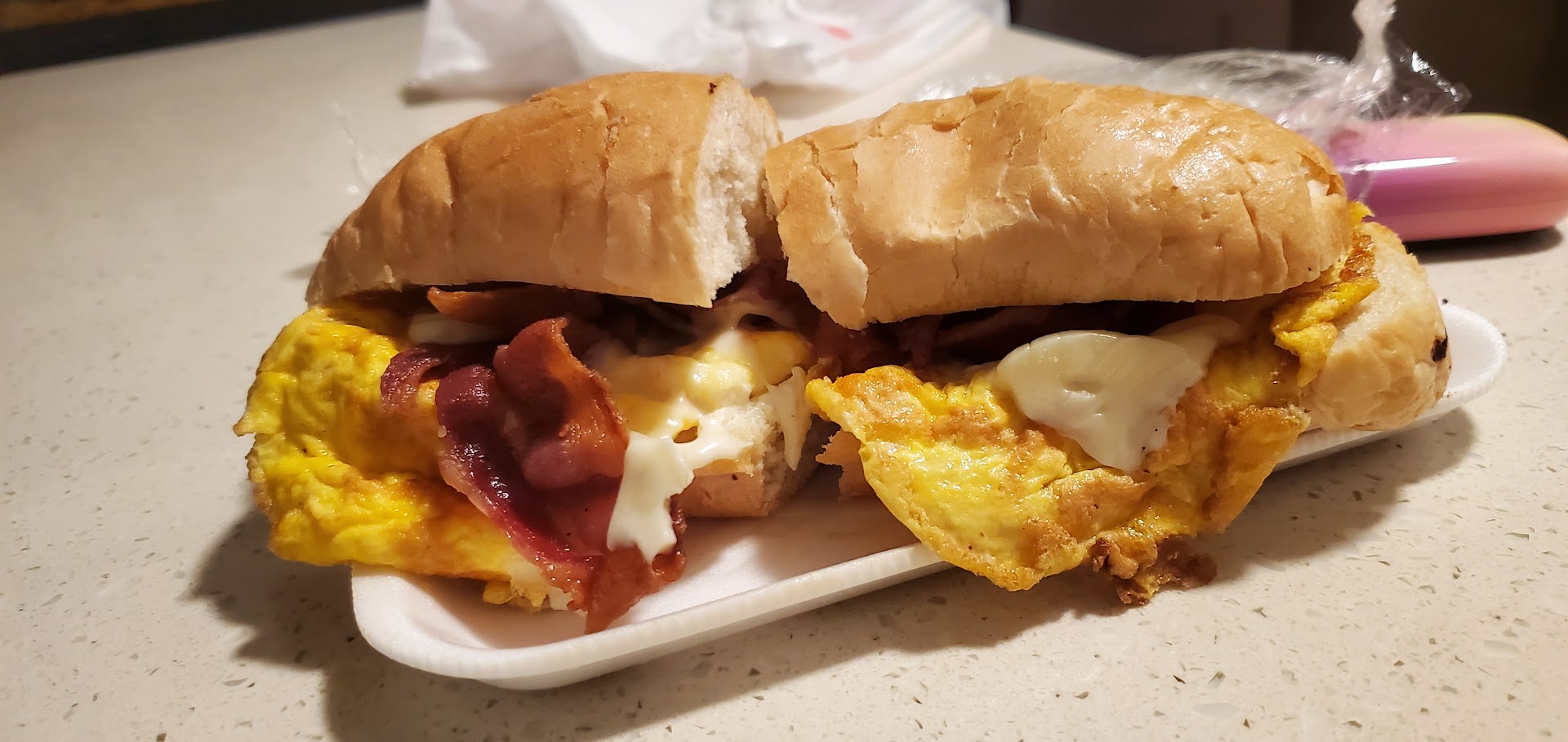 I had passed by this spot many times since I moved to the area in November and I finally decided to try it this morning on a walk with my dog. Not only are the people there friendly, but the quality of the food is just fantastic. I ordered a bacon egg and cheese sandwich on a french roll and holy shit. The sandwich itself was huuggeee, the bacon was thick and crunchy, the egg was salted to perfection, the cheese was the right amount of melted and the bread was warm and perfectly toasted. THEY ALSO ADD PICKLES AND CHERRY PEPPERS TO THEM!!! You could tell they put effort into their food. Will definitely be going back to try more items on...