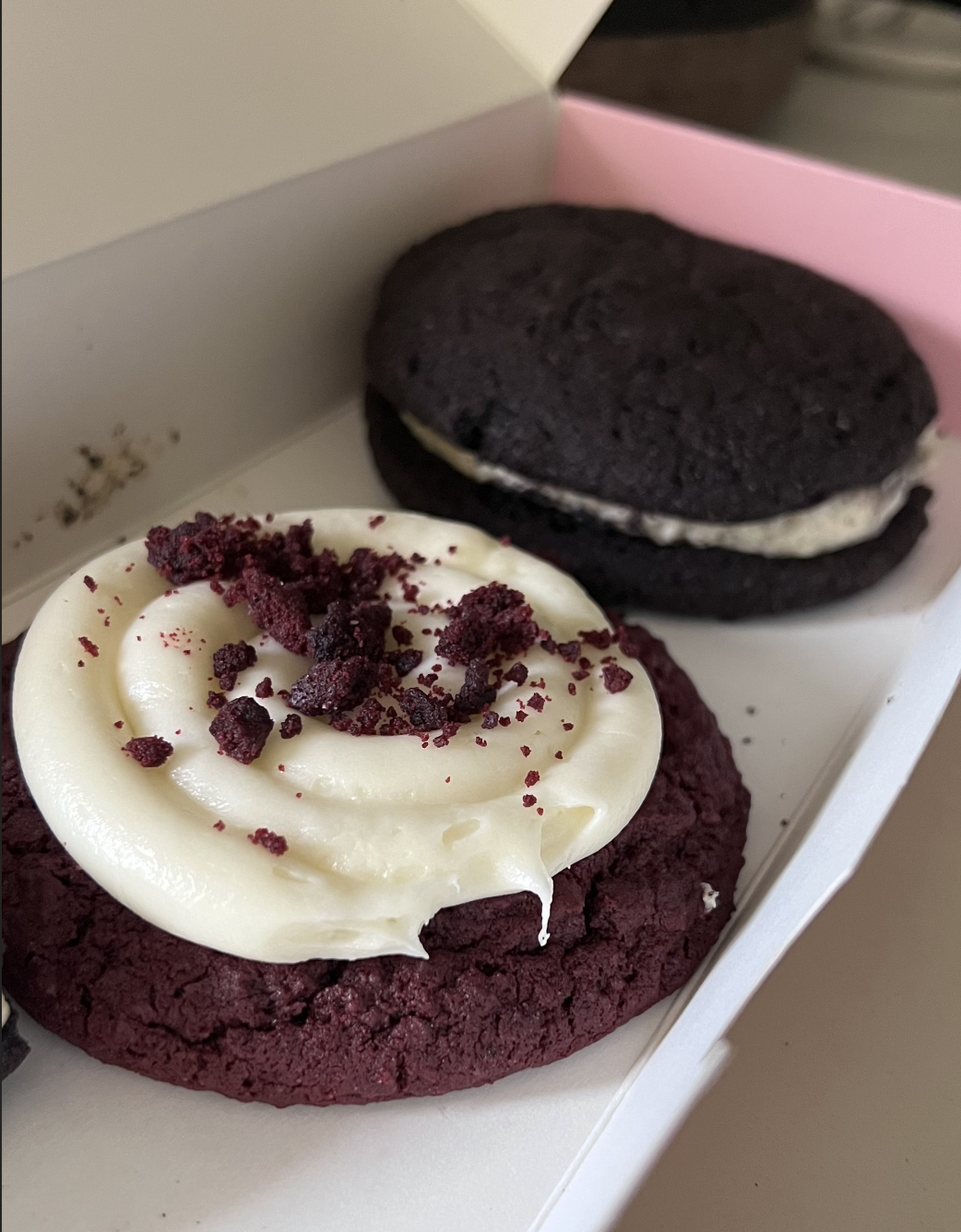 Anyways, I told him that I want that one cookie and that I'd pay for the red velvet cookie. He calls the store to make sure those cookies are available. Calls me back and informs me that someone had just placed an order for 50 cookies of all the new cookies- sooo it was safe to say that my Mellow cookie was already sold out that day. Disappointed again, but it happens. At this point the manager/owner tells me he’ll set aside the cookie I want and to just let him know when I can pick up. He was very attentive and made sure I got the cookies I wanted when I got to the store.