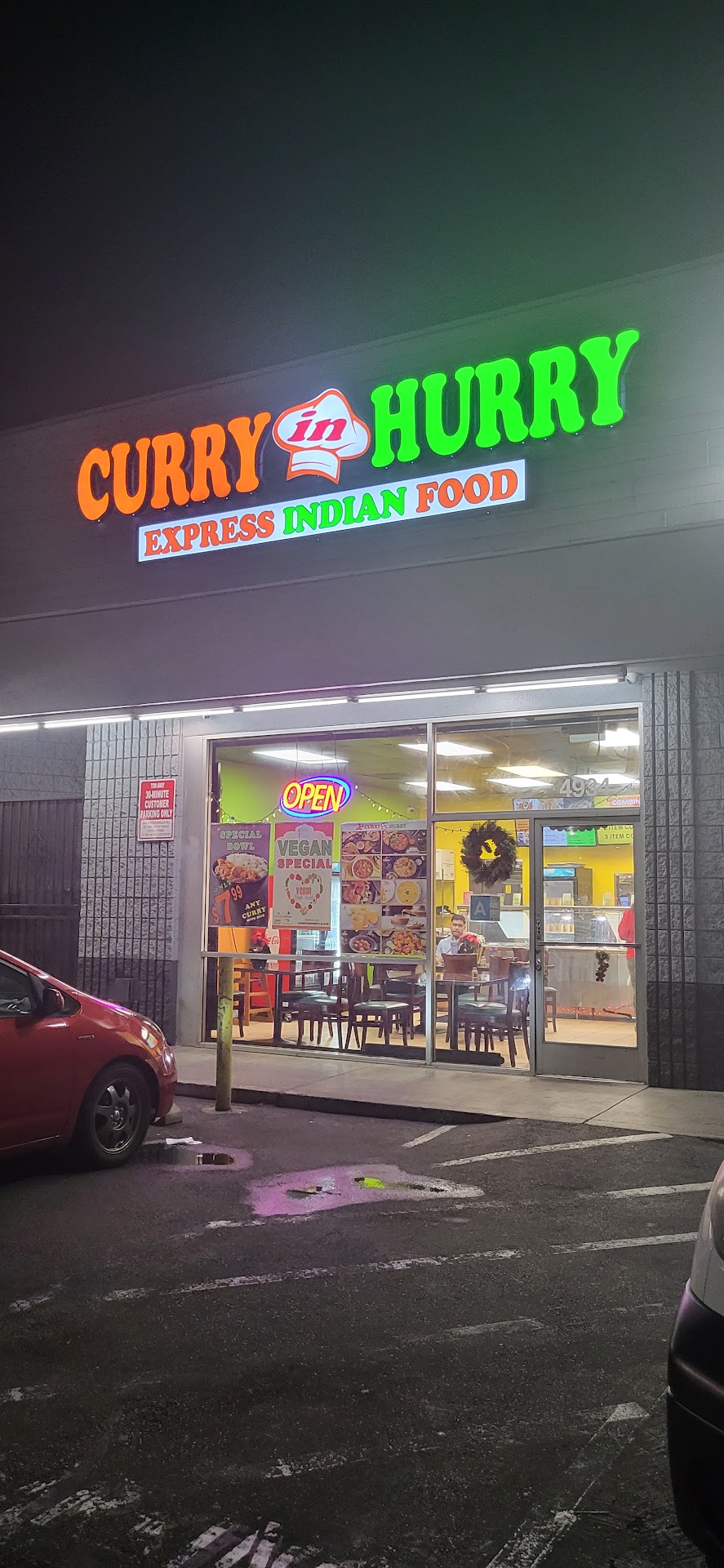 Read moreI'm known to drive around town finding the best Hindu restaurants. I've eaten on some really good and really expensive ones. NO ONE compares to curry in a hurry. The lady (i think the owner) has such a bright, positive aura, when you walk in, it welcomes you and embraces you. She's always smiling and explains everything you need to know, so if it's your first time trying Indian food, you won't feel intimidated. The food, oh my God, what can I say. It would be the equivalent of dying and going to food heaven! I always get the 3 items plate, that way i can try a bit of everything. Mango chicken is good, chicken Tikka masala, chicken curry, chicken korma. Do not get a plate without ordering the garlic naan, chicken samosa, and to complete, get the Mango drink, which i forgot the name, but she knows when you ask her. It's like a mango yogurt smoothie. The best thing you'll ever have!!! This place is the definition of a hole in the wall restaurant: inside a little shopping site, you would never guess you will have the best Indian food in the whole Los Angeles. I've been here many times, then i try others, and i end up coming back. Nothing beats curry...