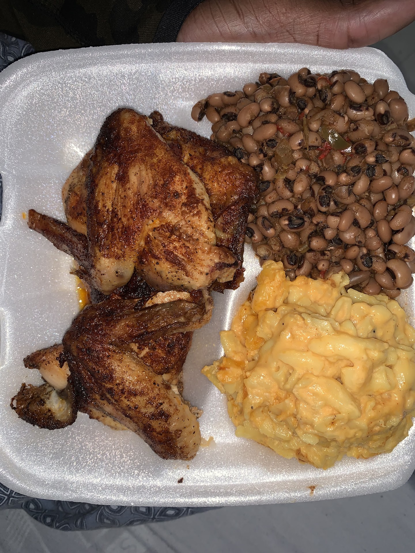 Check out the featured prayer, awards, plaques and beautiful family photos on the wall behind the register as you pay for your takeout. Read the signs about supporting black-owned businesses as you enjoy your dine-in meal on the patio.