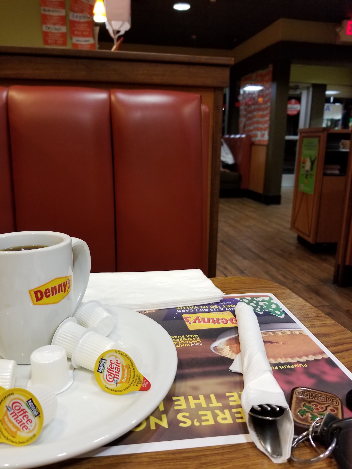 There also hasn't been any working customer Wi-Fi at this Denny's in more than a year. The few times I inquired, I was told they had a tech working on it, and that the wifi would be working again soon. Just for fun, I also shot off an email to Denny's corporate headquarters, and was told basically the same thing. It must be a company line. "We've got a tech working on the problem and it will be...