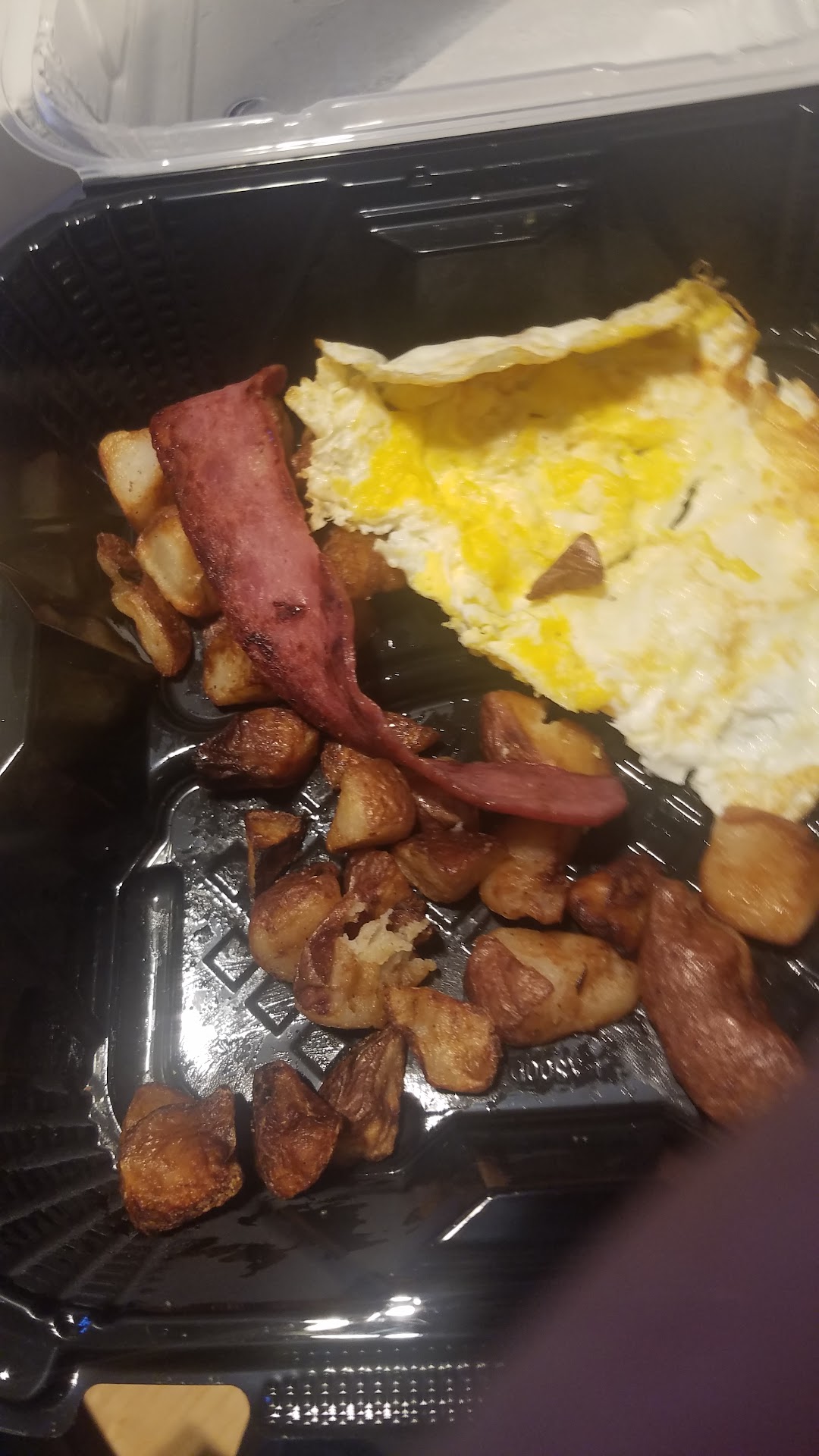 It was the Double Cheeseburger that I often get at Denny's and it's really good, but this is the 2nd time I had ordered it at this location. 1st time wasn't too noteworthy but this one was very bad. For one, the service when I came to the restaurant was very poor. The guy working the host stand was clearly not wanting to be there and when I told him my name for the order I was picking up (which was right at the counter to the right, he told me to wait a second and then he went past the bag and went to deliver food from the foodline to other people despite him not rushing to do so prior to my arrival. It was a minor thing, but he then attempted to hand me the order without checking if there was a drink, which there was, and I had to remind him. This is honestly just typical "I don't wanna be here" worker behaviour which, while I can understand, I don't support, as a hard worker myself.