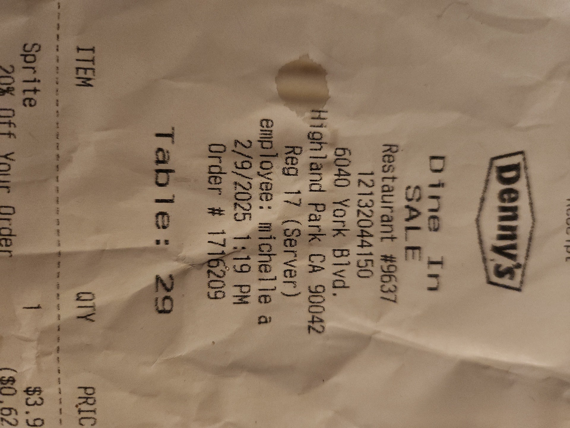 Was looking forward to eating out with my family it started out well, but then went south real quick . While placing the order, it went well she was pleasant polite it was all good then fter we placed our order , we never saw her again ! Didn't get my appetizer before my meal got it during. I never got my salad before my dinner. I got it towards the end! We kept looking for our waitress, no where In Sight . We had to get someone else to get her so I could actually get my salad . Then NEVER saw her again ! No refills, NO visit to the table to see if we are OK NOTHING !! Thirsty as heck and wanted to order a meal to go but decided not to. And what was really bothersome was the fact the other waitress saw us looking around for her but didn't tell the waitress! They all stood behind where the barrier is just chatting away. Was the worst service ever not sure if we will go back because after this review, who knows how our service will be if we returned. My kids love Denny's, so hopefully, we'll go somewhere. But I have to say whoever was or is cooking back there can throw down ! Everything was so delicious ! All the food was so good!...