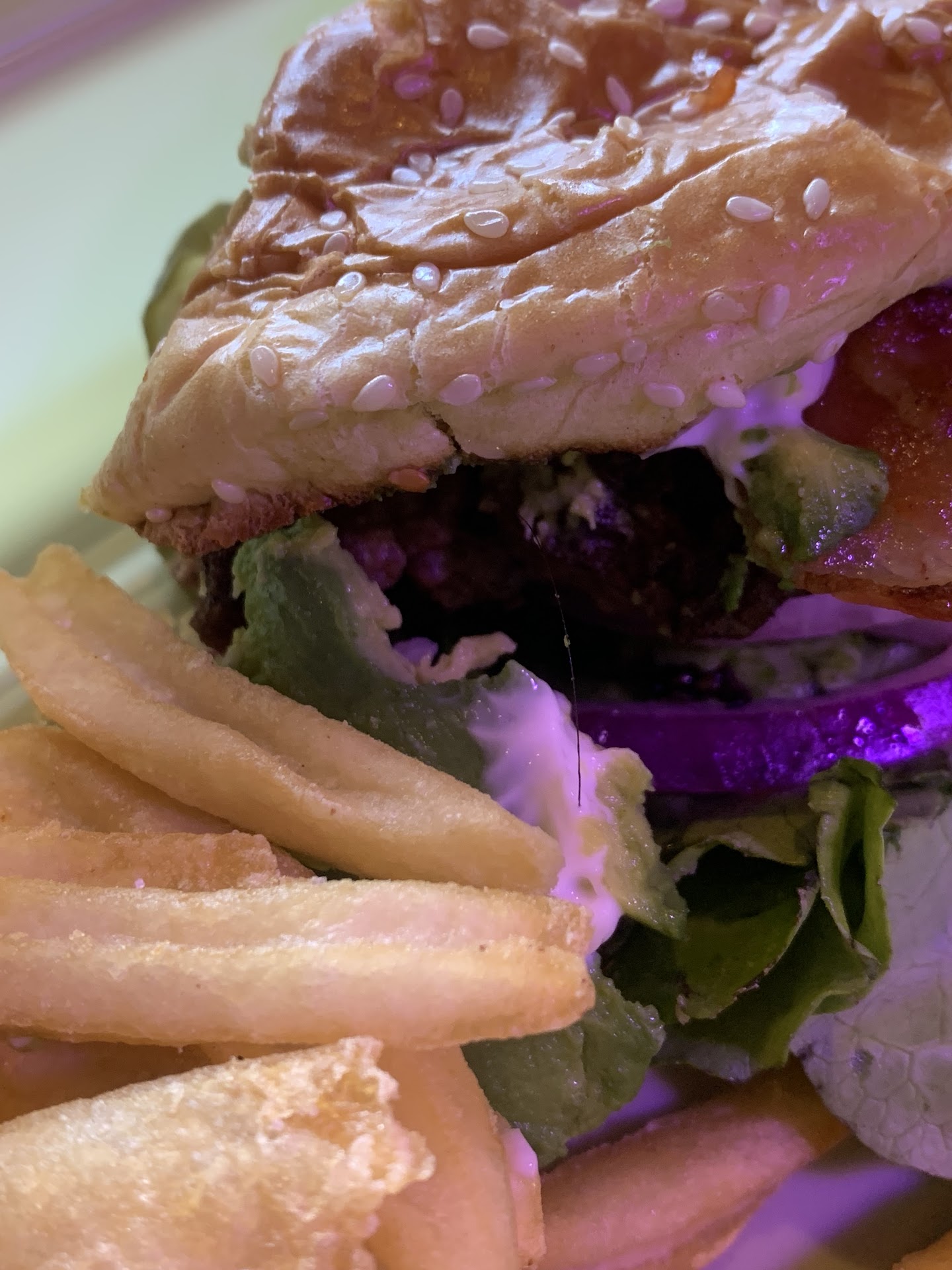 I had sunny side up eggs with cheesy hash-browns and an English muffin. This looked pretty good on the plate…the exact vision I was going for…though the whites of the eggs weren’t totally cooked, and the hash-browns, although crispy on the outside, were definitely undercooked on the inside. The english muffin was done perfectly. Also they charged me for a Junior Slam since they no longer have a 2-egg breakfast on the menu so it was a really good deal.