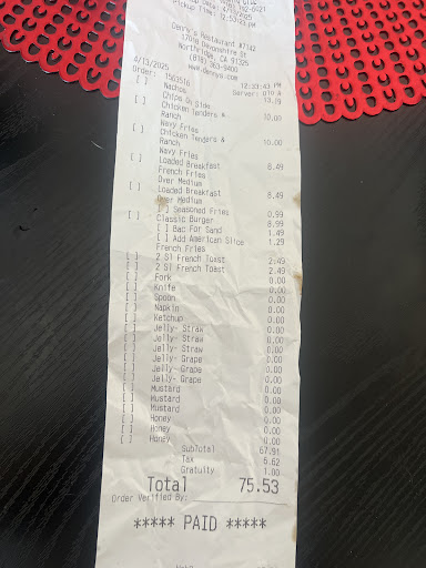 Read moreDenny's menu offers a wide range of classic American comfort food, from hearty breakfast items to satisfying burgers and sandwiches. We started our meal with the Moons Over My Hammy, a flavorful breakfast sandwich with layers of ham, scrambled eggs, and melted cheese, served on toasted bread. The dish was a comforting and filling start to the day.