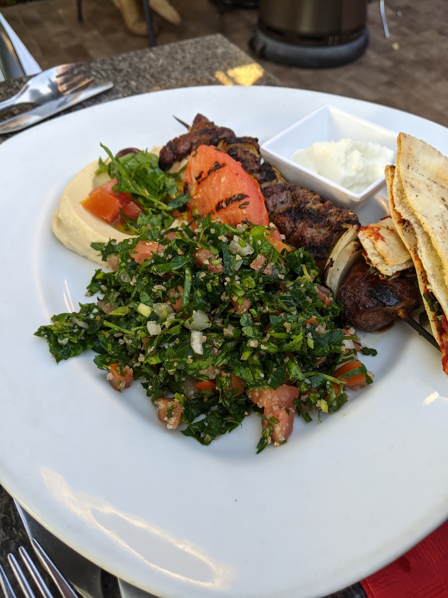 Read moreOur group of 7 (plus a dog) came here for brunch on a Saturday and overall it was a good experience. I love the stained glass rose sculpture that prettifies the exterior of the restaurant, and there's a plethora of outdoor seating with huge umbrellas so you're not absorbing too many UV rays. It's also dog-friendly on the patio and the trickling of the water fountain makes the experience all the more serene.