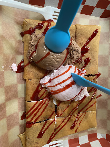 STELLAR FOOD I have tried the shakes, acai bowls, and crepes -- all are so good! But my go-to is always the crepe because they are literally cooked to perfection every. single. time. You can see that they have the batter ready and cook it right in front of you into a perfect LARGE crepe (so big I can never finish it in one sitting). SO FRESH and SO DELICIOUS. I always get cookie butter, strawberries, and brownie bites in my crepe and it never fails to hit the spot. Also, sometimes they get their strawberries from the farmers market and use those strawberries for crepes -- so much extra effort just to make their food extra amazing! Their brownie bites are INSANITY. I do not even have a sweet tooth but I swear I could eat their brownies alllll day! The crepe itself is the BEST I HAVE EVER HAD. (Several friends and family members have said the same thing, including the ones who have traveled to France.) I cannot even count the number of times I got a crepe from dipnmix on a sad day and felt 100 times better afterwards. They also cut the crepe into little rectangles which make it so much easier and so fun to eat -- the perfect bite or two in every piece!