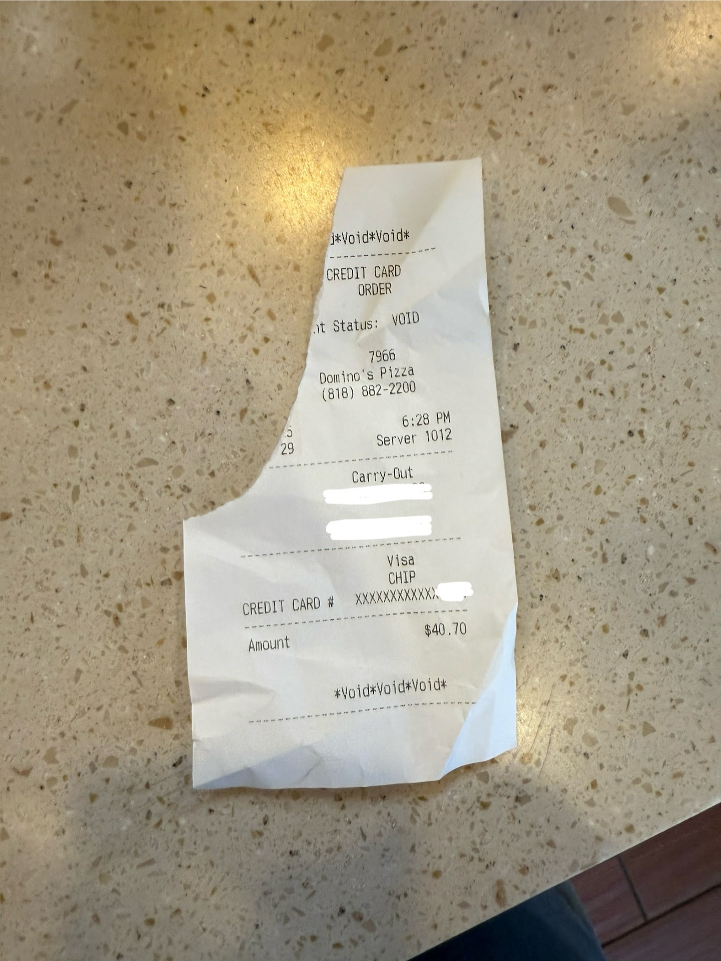 When he cancels the order he gave me a receipt literally ripped in half. At that point I was very upset because of his demeanor, and I asked to reprint it. “Sorry but once it’s voided we cannot reprint it. You can get the information you need from your email confirmation”. Wtf am I supposed to do if they ask for information on the receipt when there’s nothing on it!?