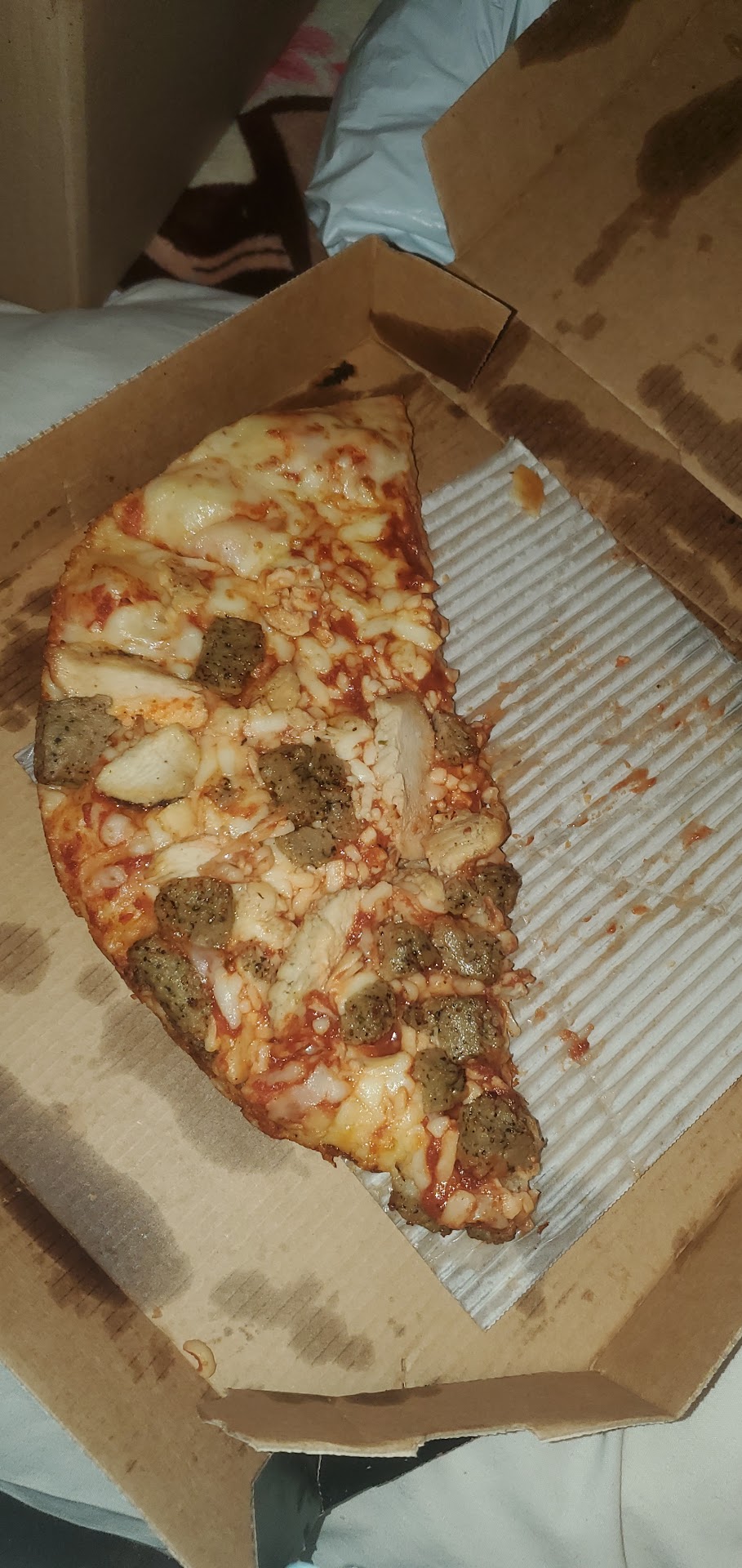 Read moreUsually I'm BEYOND EXTREMELY SATISFIED AND HAPPY CUSTOMER!!!!!! but, tonight I am absolutely BEYOND UNSATISFIED AND EXTREMELY DISAPPOINTED!!!!! My pizza was delivered raw! I'm pretty sure I selected Well done as I always do ... and this pizza was extremely under cooked ! So frekn disgusting honestly. I'm so mad right now. I am literally cooking it again while typing this ! Look ! It was mush and so hard to pull out out the box to put in my air fryer cuz it was so undercooked the cheese wasn't even melted. It may not look too bad in this picture but trust me ! All that is missing is in my air fryer and it looked exactly like the plain cheese part . So disappointed but it's not worth calling and complaining cuz honestly I'm too shy and nervous I can't do that I can't call and complain and I'm also a repeated customer so even mote embarrassing if I did call and complain. But I sure can type this review because I need to get this off my chest hopefully u guys at Domino's read this cuz really that was so unexceptable and I really really reaaaalllllly usually looooove my food every time I order from...