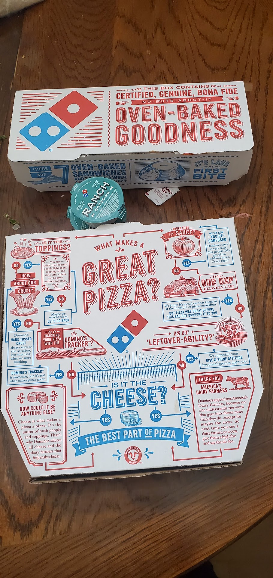 Domino’s Pizza, Tip: Pizza Hut has incested in a white plastic tripod that is placed in the middle of the pizza to prevent the pizza from being smashed/ squished when being stacked or...