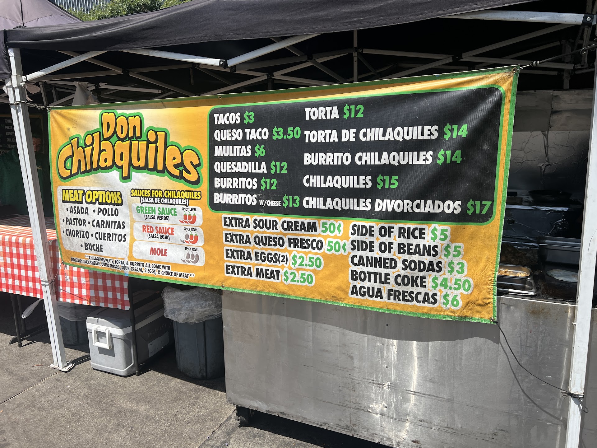With street food, it's either hit or miss. I only go to street vendors that give me a good deal. Street vendors have little overhead cost compared to a dine-in restaurant, so I want a better deal. I can tell you that the cost savings at Don Chilaquiles go directly to customers. That is why you're seeing a long line here.