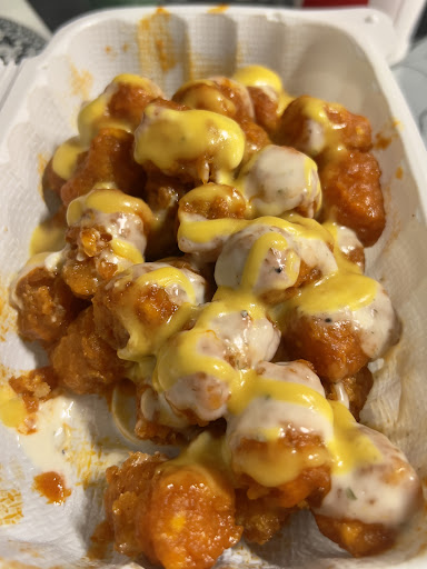 I appreciate the low-effort, to-the-point decor that has become emblematic of their establishment, honestly. Late at night when I want to loiter comfortably for a little while and eat something greasy and absurdly decadent, I enjoy doing it somewhere that lacks pretense; where I feel like I belong even at my most disgusting and unpresentable. They recently gave the place a modest upgrade, which just meant a new coat of sky blue against the black, a neon light Doomie’s guy, and finally some cushions on the booth seats, but I think they know that their food is what matters most. Honestly, everything about the place is just quintessentially punk.
