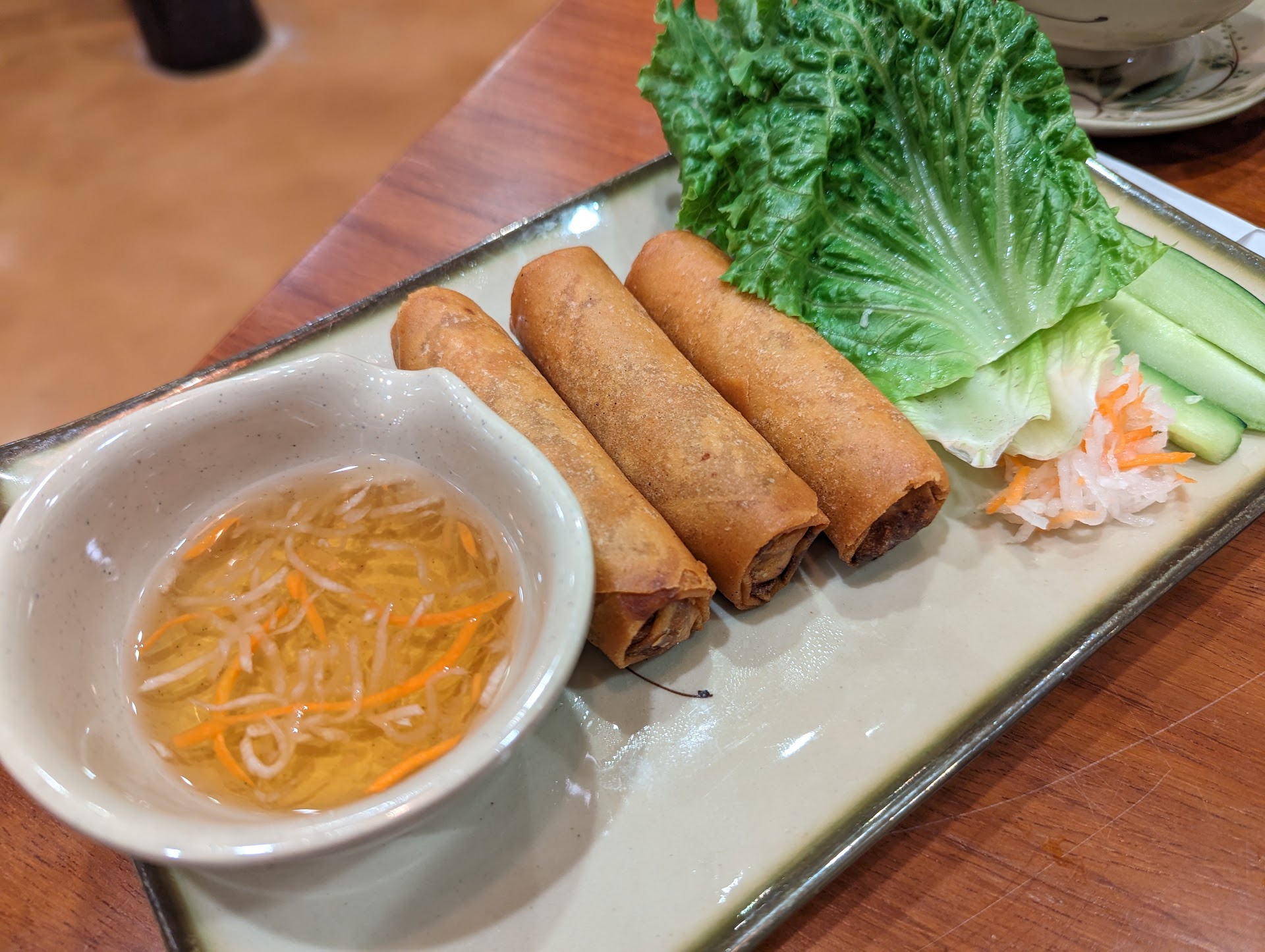 Have had many dishes from here and have been amazed by them all. Their spring rolls are always fresh and perfect tasting with the dipping sauces, the shaken beef is prepared in a very authentic way and is tender and delicious (they even give you the salt and pepper with lime to dip your meat in!), their sandwiches are always tasty and filling, and their pho is perfectly seasoned -- not too salty and the beef is a high quality cut.