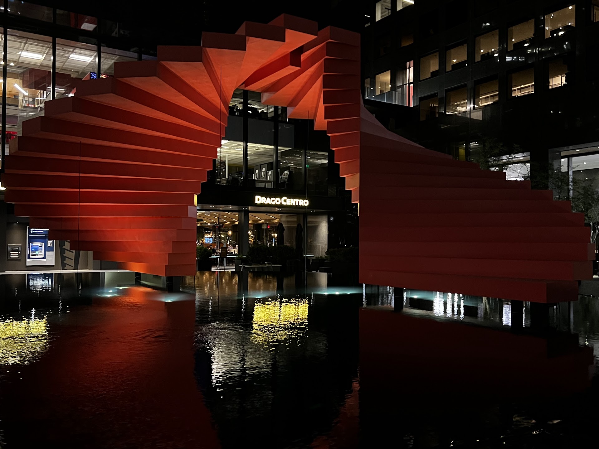 I was unbelievably excited to finally try Drago Centro during DineLA last week. Last minute reservations on a Saturday night were easy to come by, the valet parking was free, and the restaurant decor was absolutely gorgeous. So many things going right for Drago already! The wine pairing during DineLA was $22 for all 3 courses, but they also have reasonably priced carafes of which I selected a lone Sangiovese. Probably my favorite dish of the evening was the seafood pasta. Seasoning was spot on, shrimps were bursty, and the calamari had a nice bite. Just from this pasta starter, I can tell their pasta dishes are probably the stars of the menu. The plating of the buffalo mozarella was so artistic, and I loved running the mozza/basil/tomato combo through the balsamic dots. As for the mains, the scallops were huge and plump, and the garlic risotto cake while deep fried managed to taste light and buttery at the same time. I did enjoy my crispy skinned quail, but stuffed with sausage, it was just a little too heavy for my tastebuds. It wasn't a badly executed dish, but having shared 3 plates of food by this time, my friend and I were already too stuffed to stuff ourselves with any sausage-stuffed quail. Miraculously though, my friend and I managed to find a 3rd stomach for dessert, and we were not disappointed. I wish I had a better picture of the panna cotta, because it was also beautifully plated. It's probably the best version of this dessert I've ever had. The rosemary crisps played really well against the sweet panna cotta. Unfortunately, the chocolate and olive oil terrine was a little mushy, and the salted caramel gelato had melted by the time the plate was delivered. I will let that slide though b/c it was DineLA weekend, and while our server was extremely busy, he still managed to be courteous the whole meal. I really loved the whole dining experience at Drago Centro, and I will surely return for a nice lunch, dinner, hot date, birthday, Wednesday,...