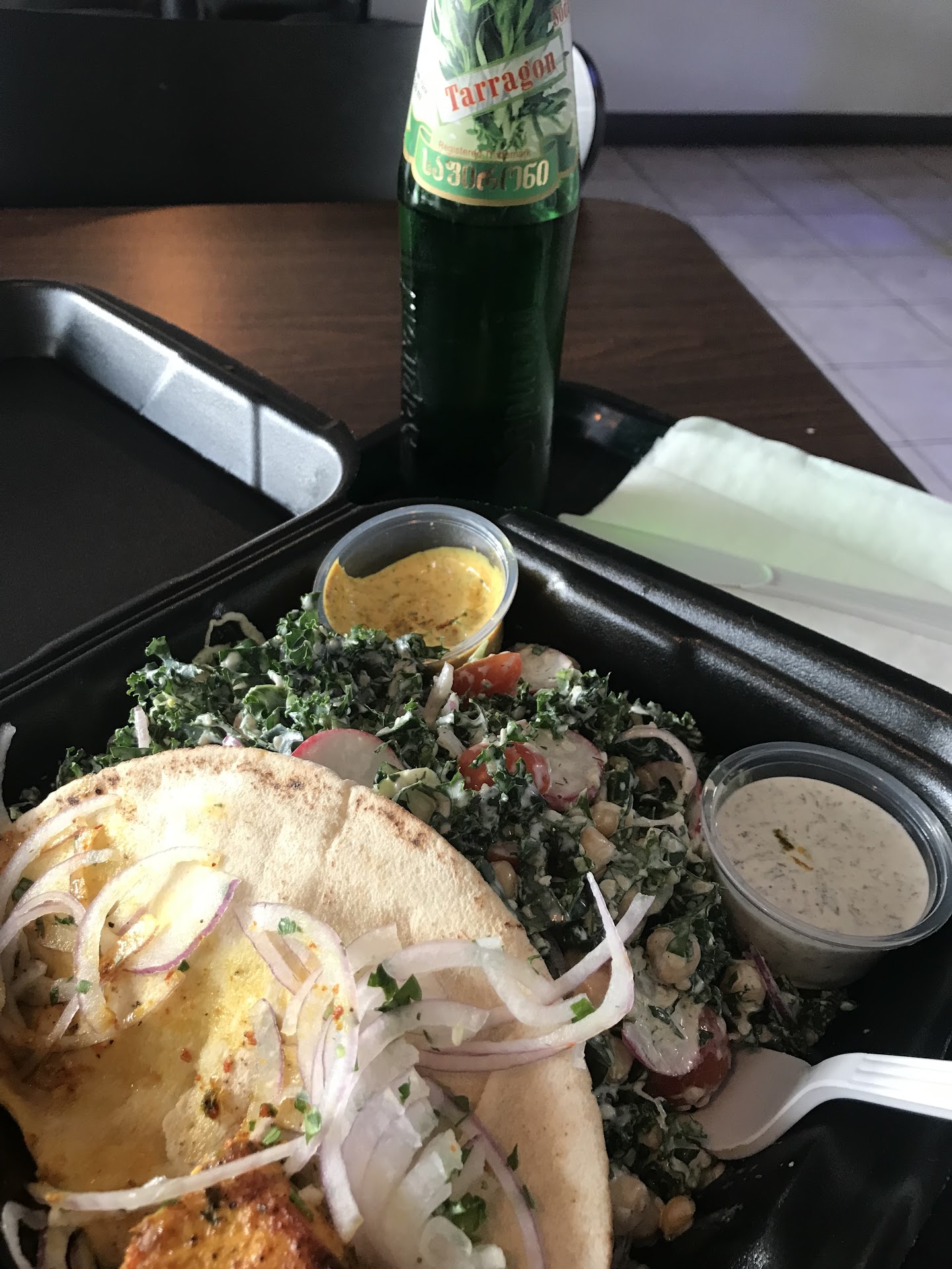 I’m losing track of the number of my visits to this excellent restaurant. Today I’m having a delicious salmon kabab + kale salad + terragon soda! The photo I took isn’t the best and I should have shot it before I polished off most of the salmon.