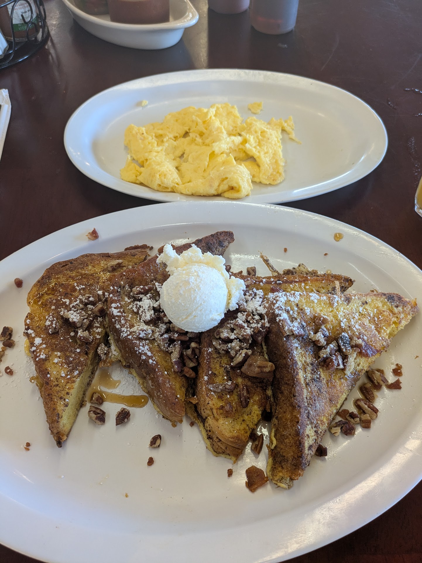 Asked my husband to pick up breakfast for me while he was out running errands. He was given the wrong order. When I called the restaurant, they couldn't figure out who took the order or who cooked the wrong order. (Not my issue) The owner, Im assuming got on the phone and tried to tell me what he ordered was what he brought home, NOPE. Then she told me he ordered an omelets. WRONG AGAIN. Then she told me to have him call the Eat at Rudy's in Torrance. Then she told me to have him drive back over to the restaurant. We live at least 20 minutes away. She also yelled at my husband when he told her he had called in the order..and they wanted to know what place he called. What a train wreck! A bit of friendly advice, do not order anything for take out. Go in to eat instead, where you will know immediately whether or not you got the right order. The food is good, but not worth all this trouble and expense. We were never offered a refund for someone else's breakfast that is now in...