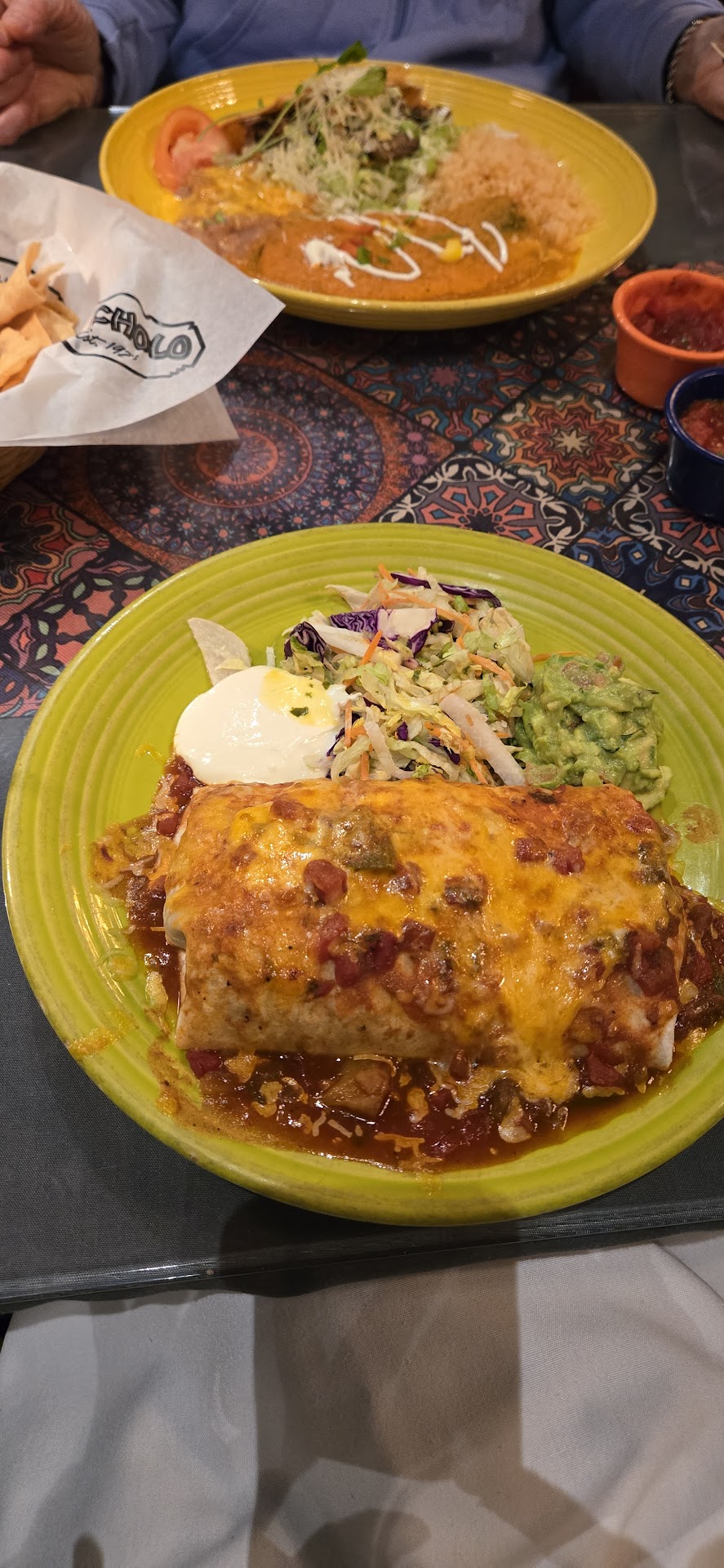 Read moreHadn't been to El Cholo in a long time and was looking forward to enjoying dinner at the DTLA location with my family. We walked in with our reservation and were not greeted at all, just led to our table without a single word; it was so strange that it was almost eerie. Luckily, our server was absolutely lovely. But she was the single bright spot of the night. Chips were greasy. Guac was slimy and tasted pre-made. My dinner mates said their tamales and burritos were good, but I wasn't sure if they were just being polite. My enchiladas were serviceable, but the tortillas were stale and hard around the edges. At $15-16 a plate, it wasn't an expensive dinner, but it was definitely not worth even that much. Ambience is OK in the courtyard, but more so if you're there for after-work drinks; this is definitely a loud drinking place more than a kick-back-and-enjoy-good-food kind of place. As an added bonus my daughter said one of the toilets was covered in vomit. Food was awful, but I can't give this place just one star because the ambience (vomit notwithstanding) was a solid 2, and our server...