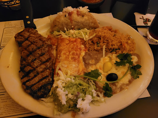 This visit was on Aug 15th. The inside is very very dark. The menu font is tiny. I had to use my phones flashlight to even see the menu and even then it was difficult to read. The music was also very loud, we could barely hear each other. Our server sucked, I don't remember his name but we had to ask other servers to go find him for us so we could order anything and pay our bill or get napkins/salt/etc brought to our table. My uncle recommended this place and while he thoroughly enjoyed his food, mine was bland. I ordered the burrito combo and I asked the waiter if it had sauce on it, he said yes, so I asked for it to be replaced with cheese dip. Well after a very awkward and frustrating exchange, I found out they don't have a plain cheese dip, but a queso bean dip one, but the waiter was adamant that the kitchen couldn't put cheese or queso on my burrito because it came "dry". So then why did he tell me it had sauce on it in the beginning when I asked?? He told us they use mozzarella for the cheese so when my sister took over the exchange, because I was too confused and flustered with him, if they could put that cheese on it he said no. Okay.. at that point I just said forget it and bring it how it comes. The rice was good, my burritos were okay. The portion sizes were great in comparison to the price. And our waiter brought us out the queso bean dip, which we didn't ask for, but my uncle said we weren't charged for it, so I'm sure it was because we were all left confused over the whole cheese burrito fiasco - it was really tasty too, I recommend ordering that. My sister didn't like the flavor of the red sauce on her meal, but otherwise said it was okay. The multiple other wait staff we asked for things were all very nice and apologetic that our waiter was MIA most...