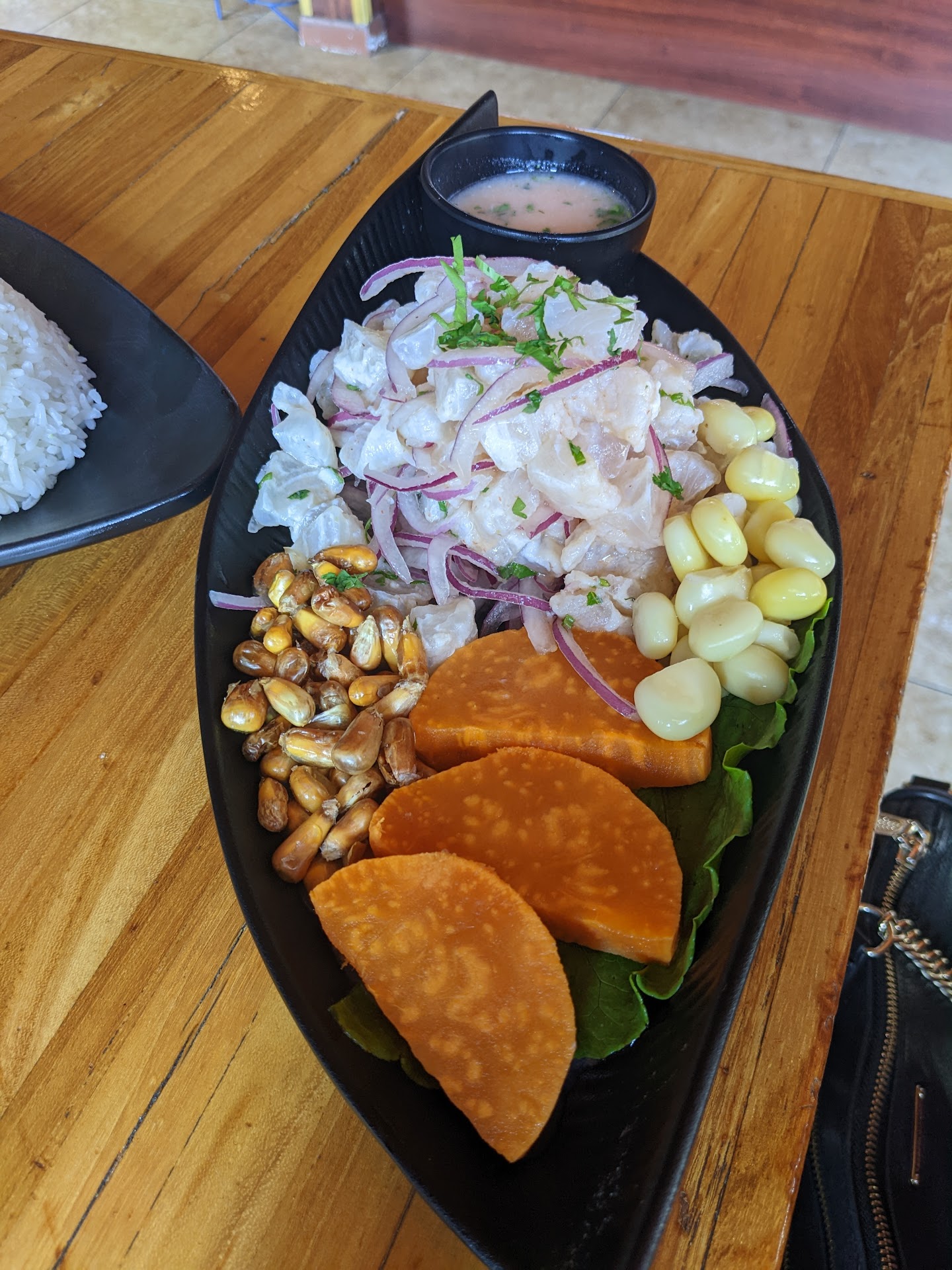 To start, the aji sauce is creamy and delicious, although lacking a little bit of that heat. Delicious nonetheless, and works well with their bread and our entrée. My picky mom usually doesn't venture out of her comfort zone of Asian cuisine, but she loves the food here.