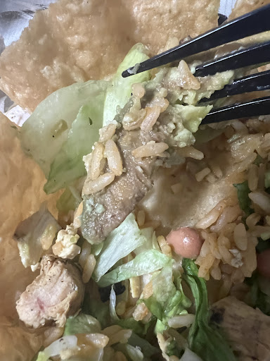 I visited El Pollo Loco at Alvarado and Temple today at 2:45 PM with two friends. One of my friends ordered a chicken taco salad, while my other friend and I ordered two burritos.