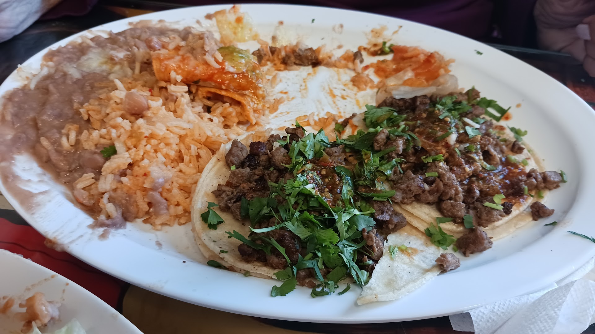 I like the 3 beef enchiladas, and I also like the three taco special as well. So why not have everything? Today I got it all. Lol.