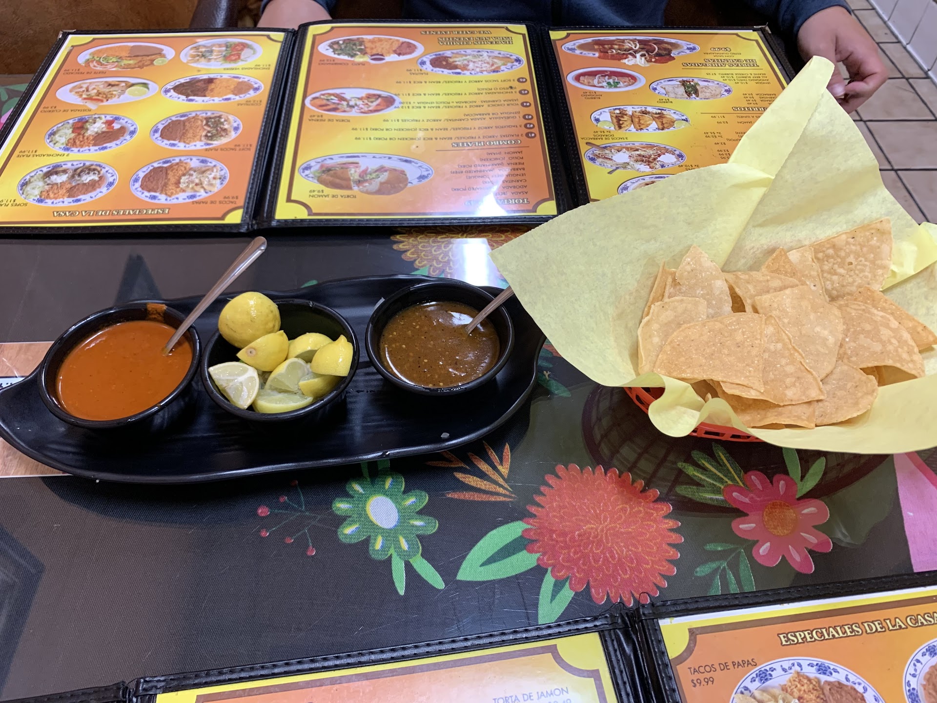 They give you chips and salsa when you sit down (kinda wish the chips were crispier but i liked the mild salsa and cut up lemons).