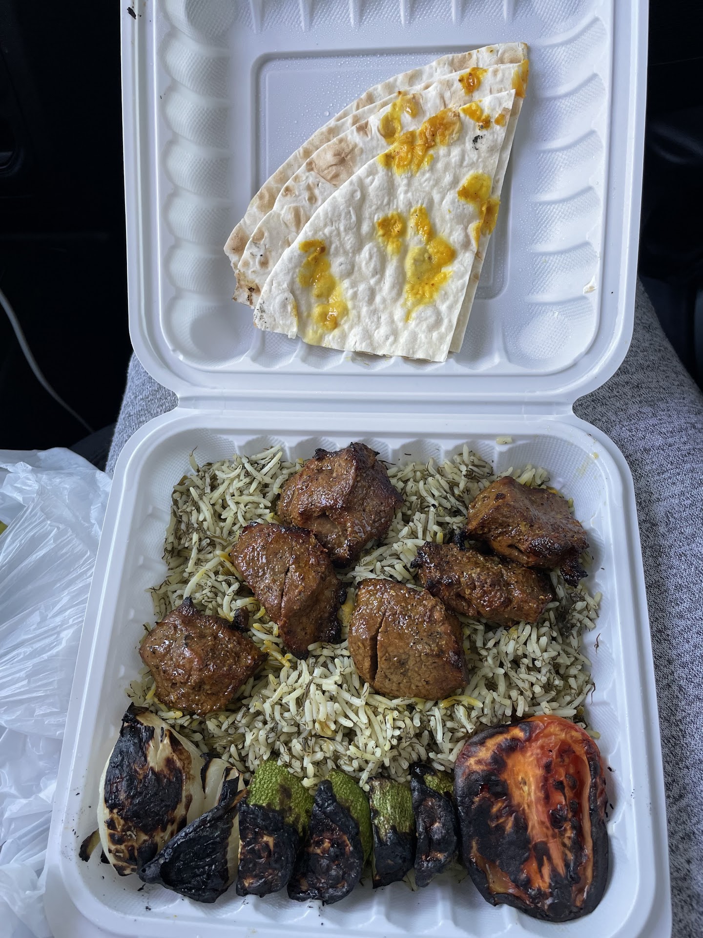 Read moreA large variety of Iranian and Middle Eastern food. Such as different types of kabobs and rice. The food quality is acceptable. The waiting area is in a crowded parking lot. Wait time is acceptable and personnel are friendly. You can use the small Middle Eastern market on the other side too, which carries a limited number of items such as Iranian foods and accessories, with a long waiting line. Overall, this is a very good option for a healthy food portion if you're in the area for work, and within a budget. Takeaways...
