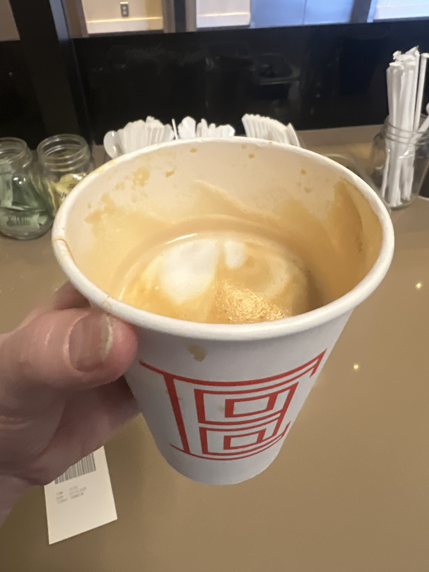 Even though there already is a small serving in the small size, he didn’t even bother to fill the cup to the top with milk, and left about half an inch empty – I had to ask three times for him to please fill up each cup – I’m guessing this is an order from corporate, to save money. Or just laziness.