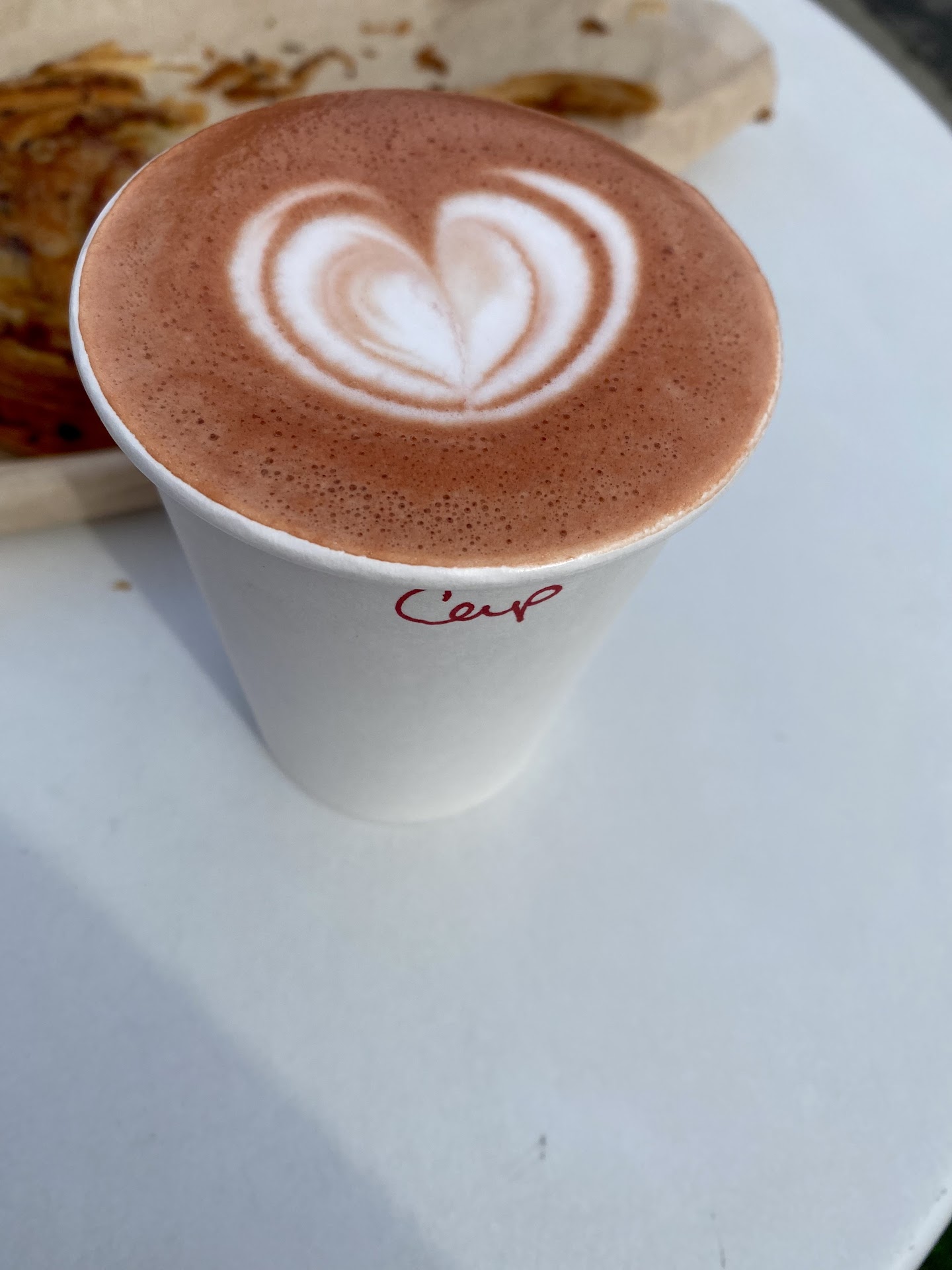 Read moreWe went to this cute little coffee shop. We couldn’t really walk-in to the coffee shop so we got in line and ordered some coffee and two bakery items. I thought it was interesting that they offered an option to make the coffee pink so I ended up getting it. It was only food coloring rather than flavor but nonetheless still interesting to try out. When I asked about the coffee, the employee at the register was very mechanical and explained what a Gibraltar and Cappuccino were in terms of fluid ounces. I ended up ordering a Pink Cappuccino. We also bought two croissants - spinach and artichoke croissant and a sweeter croissant. They were both incredibly flaky and quite tasty. It was buttery yet didn’t leave an after taste. It was a little chilly, but we sat on some chairs outside and enjoyed the food + coffee. There were several people and dogs that came by throughout the morning so I could tell this place was busy. I recommend checking...