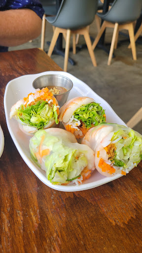 What an amazing place! I was craving some "refreshing" food and this place was our best option close by. As soon as we entered, we were received so nicely, when we mentioned it was our first time we were recommended some dishes (shrimp spring rolls, egg fried rolls, boon) so we did order that. The egg fried rolls came with a delicious mint vinaigrette and the smoked pork belly Banh mi came with a basil vinaigrette out of this world! We loved this place, the food was really good (try their feu chicken dumplings) and the customer service/attention was on top, we were treated like friends/family. We cannot wait to come back and order some pho, our experience was awesome and didn't find anything we didn't like, at the end we ordered a Vietnamese iced coffee that was really good as well! I didn't finish my food, they packed it really good in a to go box and even gave me extra mint vinaigrette. I don't think it's pricey because to us, food...