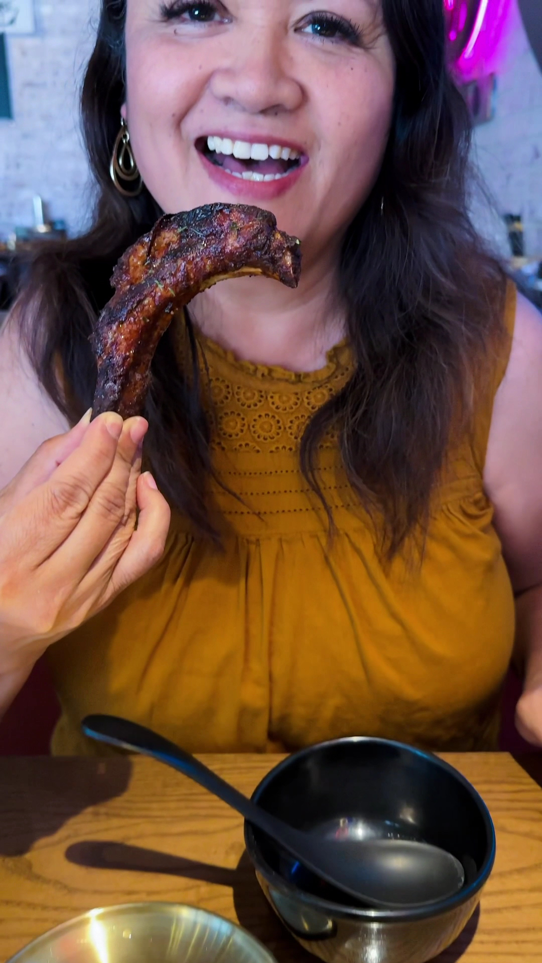 Green bean rice noodles fun to add in the hot pot. Texture was a little firm but light. Popcorn Chicken crispy but juicy. So tasty!! Cheese corn. creamy, cheesy goodness, sweetness. So good! I couldn’t stop eating it. Enoki mushrooms long, thing strands, chewy texture, earthy taste. The sauce gives it a good flavor. Grilled ribs delicious!! Easily one of my faves!! grilled flavor, crispy outside, tender Chicken wings So crispy and tasty