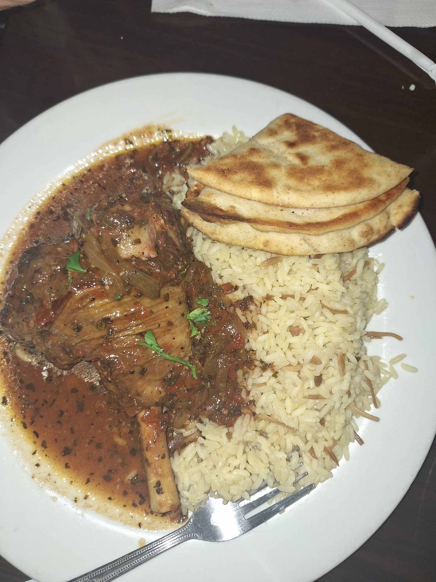 Read moreStopped by for lunch with a friend at 11:30am and we ended up being the only ones there. I ordered the lamb kabob plate with fries and my friend ordered the beef kabob plate and asked for a larger salad instead of the fries or rice option. I also ordered a chicken kabob plate with rice for my wife to-go. We received our salads first followed by our kabob plates. The lamb plate had three little wooden skewers with a few small pieces of lamb on each skewer. My friends beef plate had the same three small wooden skewers. We had two ice teas with our meal. When the bill arrived, it was 85 dollars. For 23 or 24 dollars a plate, I expected at the very least, double the protein. We were both disappointed and my friend whom had been here numerous times in the past said that their portions shrunk and their prices went up. When I got home, I found out that they messed up my wife's order and gave her fries instead of the rice that I asked for and we were the only ones there. How do you screw up an order when your not even busy??? Neither one of us will be going back. If your going to charge 23 bucks a plate, give the customer some meat...