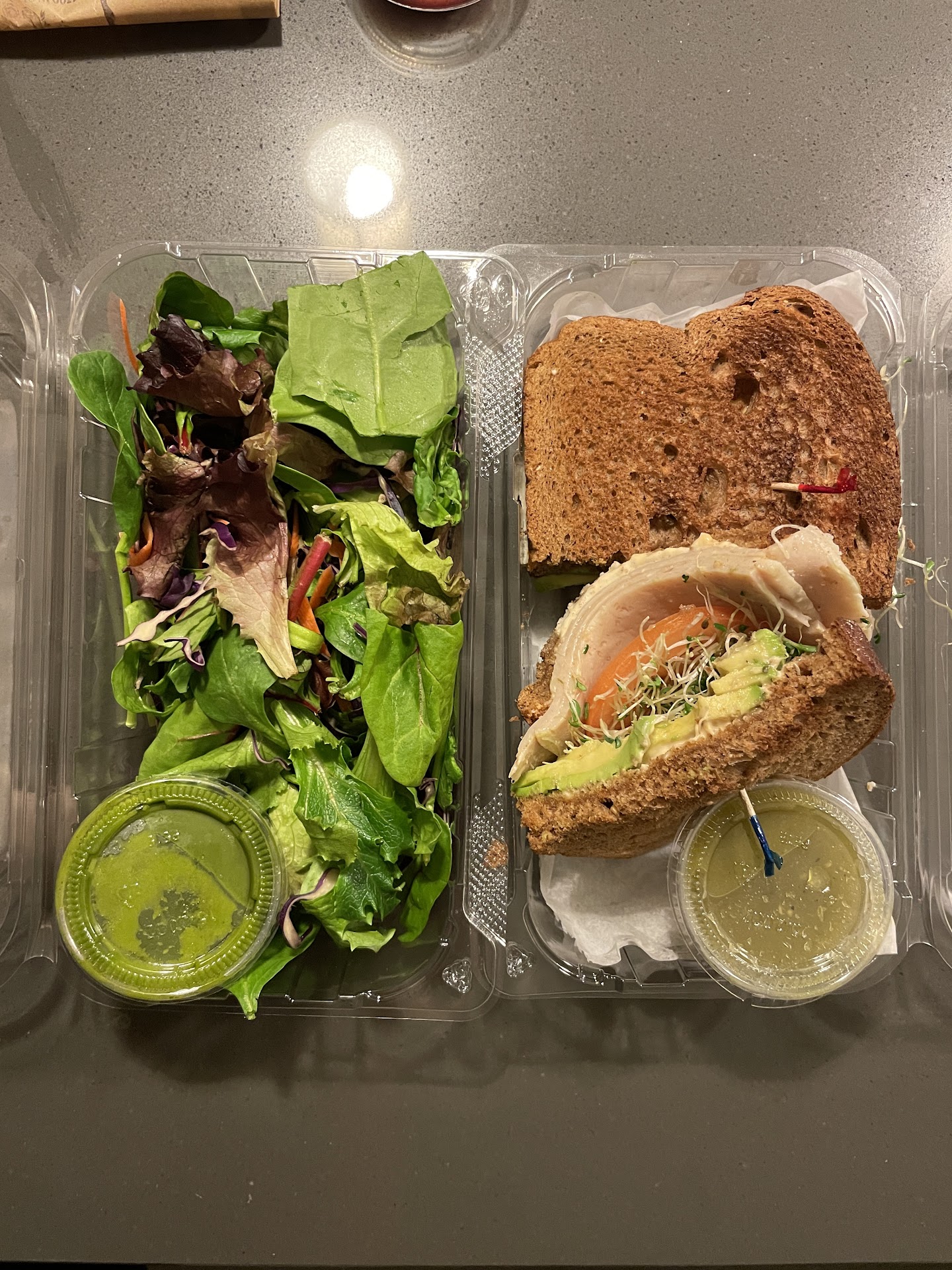 I got the Turkey Sandwich with a salad on the side. The honey basil dressing was earthy and bright with just the slightest hint of sweetness, while the sandwich was toasted to perfection and had the right ratio of all ingredients. My friend, a vegetarian, got the vegetable-packed Breakfast Sandwich with seasoned roasted red potatoes and said it was one of the best sandwiches they'd had on our travels.
