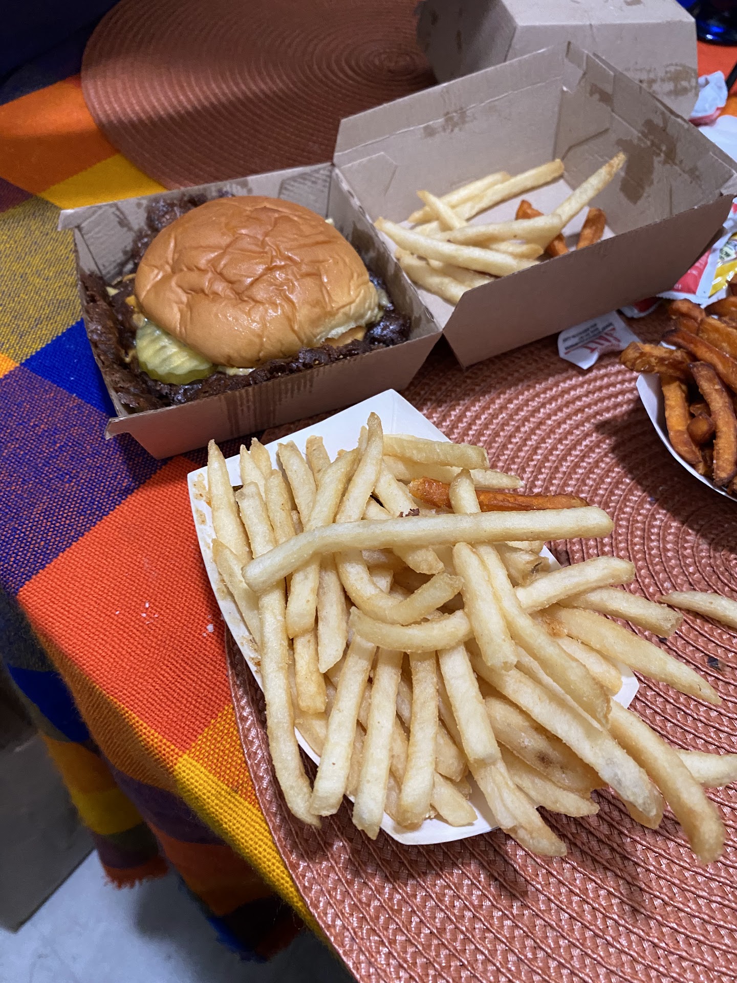 I usually only give good reviews but this place sucks. Lol Burgers are my favorite food. Wanted to give this place try since they're around the block from home. These are sadly not worth the price. Spent $45 on 2 burgers and fries no drinks. Burgers are no bigger than a Double Quarter Pounder at McDonalds. Delicious but not filling for the price. I've come to the conclusion that smash burgers as a whole are overrated and a scam. You order on a screen instead of with a human which sucks bc they still ask for tip for the food which I am taking home. They even had some bs kitchen fee on the receipt! Whatever THAT MEANS! Lol Customer service is non existent other than when they give you the bag to go. Go to Irv's Burger instead. There's a reason they've been around since the 1940's. This place makes social media food with cute branding. The only good thing about this place was the spongebob clips they had on...